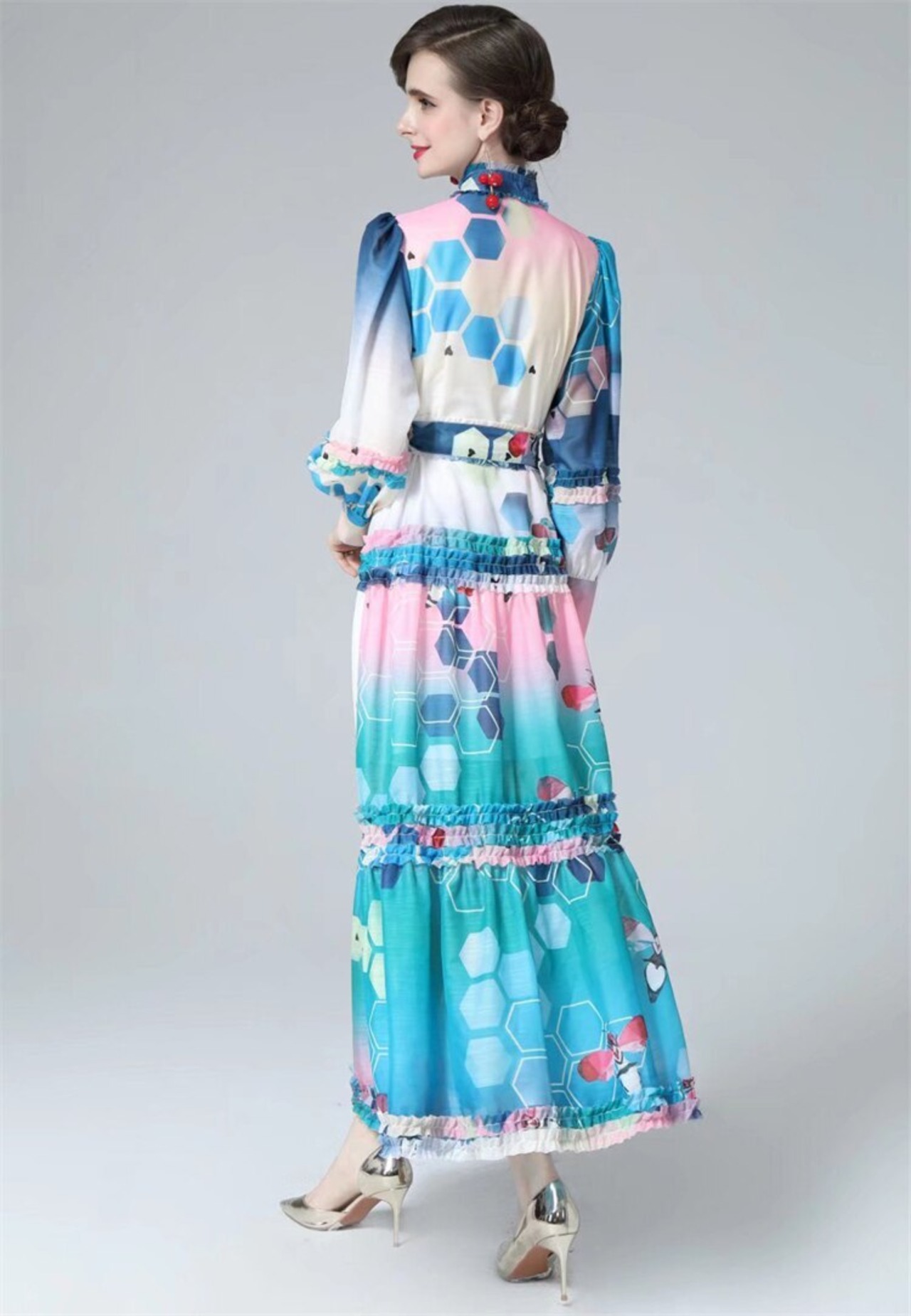 春秋の女性のドレス ボヘミアン オフィス パーティー ベルト スリム プリント シャツ ロング ドレス スプリング 春物 オータム 秋物 ハーネス 会社 学校 通勤や通学にも pri50454497475