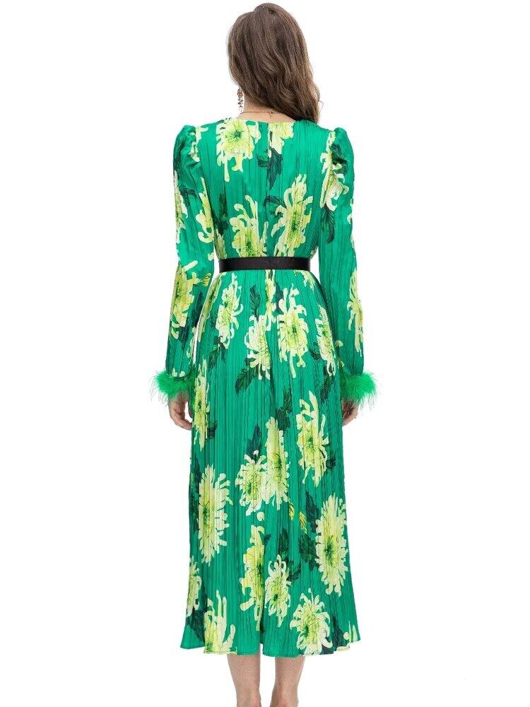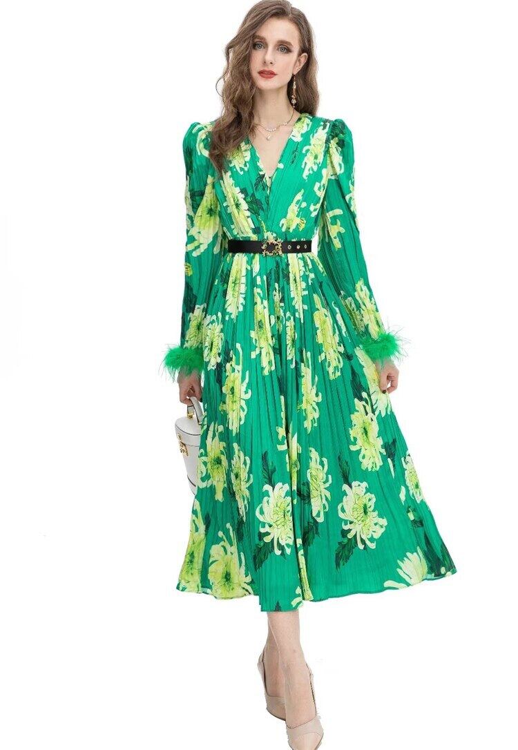 女性の春秋のボヘミアン パーティー ホリデー長袖プリント フェザー ミディ ドレス ロング スプリング 春物 オータム 秋物 pri47454121637