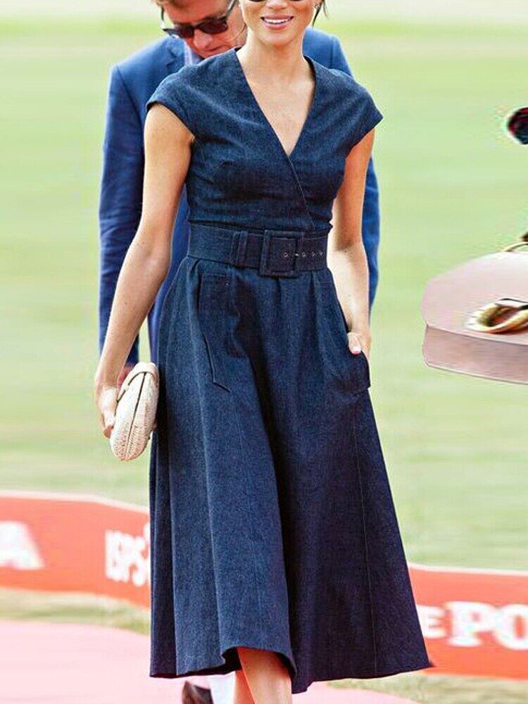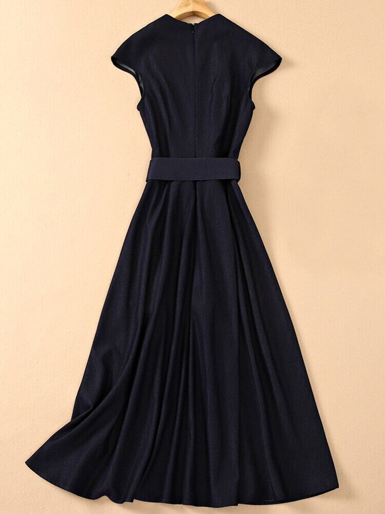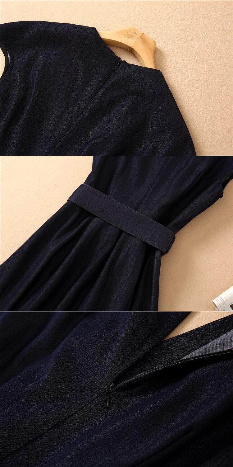 女性のドレス夏レトロ V ネック セクシーなパーティー オフィス ミディ デニム ドレス サマー 夏物 Vネック 会社 学校 通勤や通学にも pri89657719550