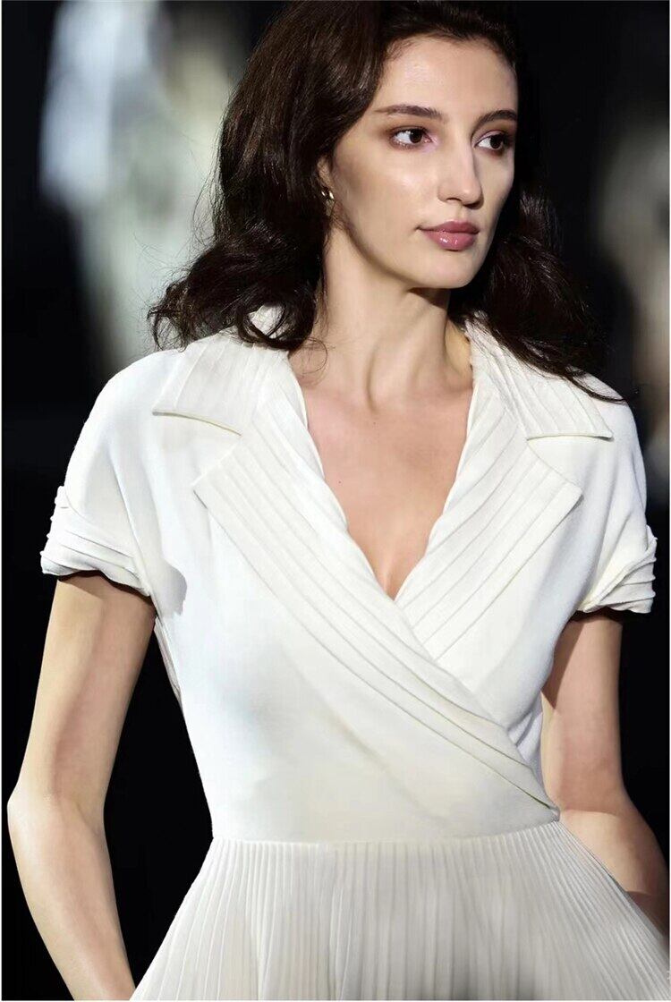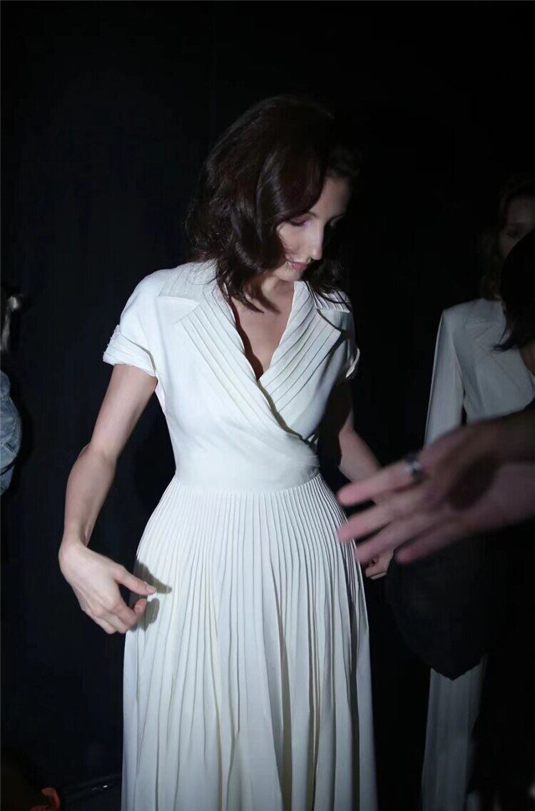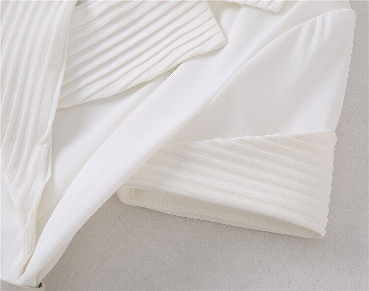 夏の女性のストリート セレブリティ パーティー シックなベルト プリーツ ラペル ホワイト ドレス サマー 夏物 ハーネス pri18001508740