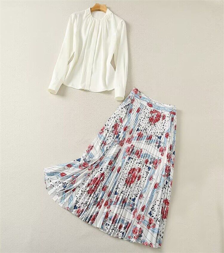 春秋の女性のセット シャツ トップス プリント プリーツ スカート パーティー有名人のスーツ スプリング 春物 オータム 秋物 pri3892488538