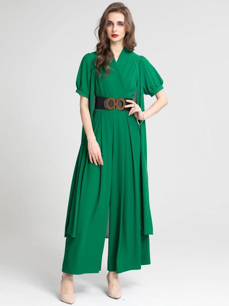 夏の女性のセット ロング コート セクシーな V ネック ジャンプスーツ パーティー オフィス スーツ サマー 夏物 Vネック 会社 学校 通勤や通学にも pri63457045829