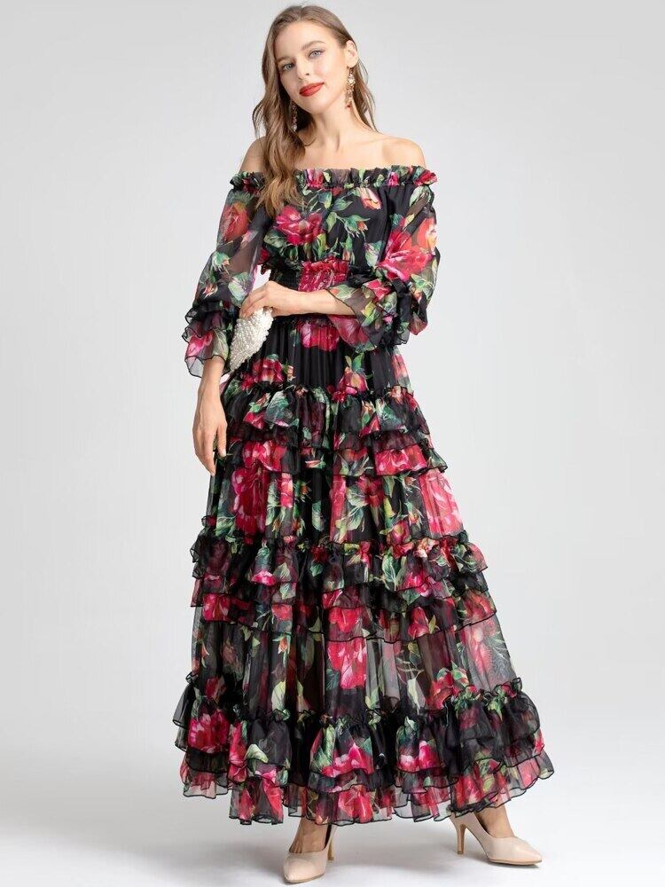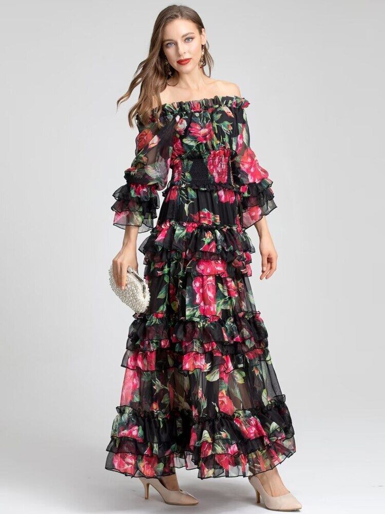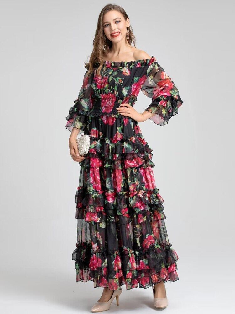 春秋の女性のボヘミアン プリント シフォン長袖パーティー ロング ドレス スプリング 春物 オータム 秋物 pri8700121899