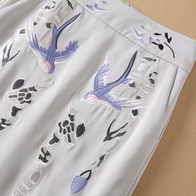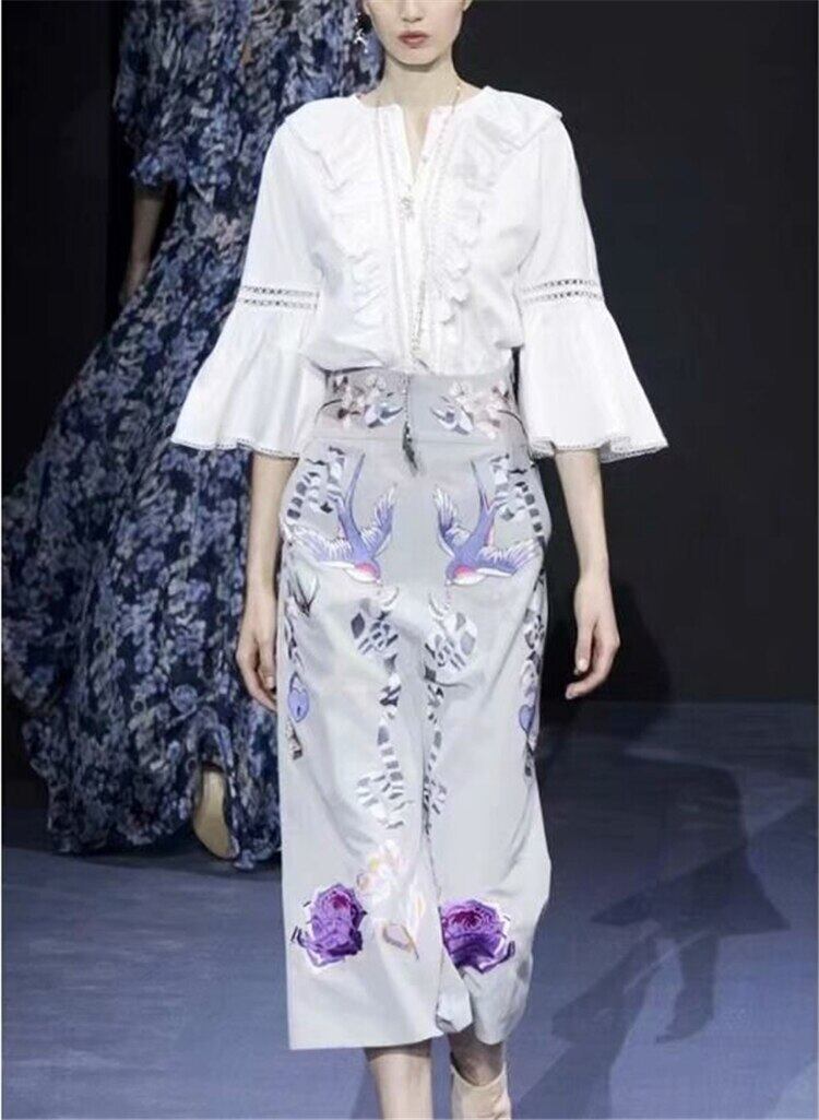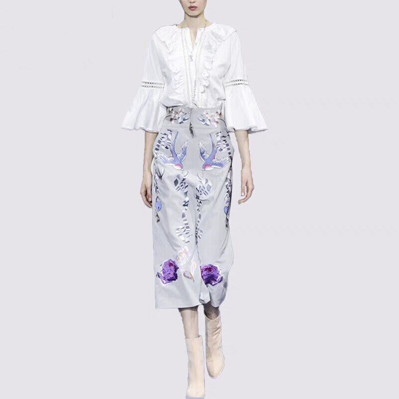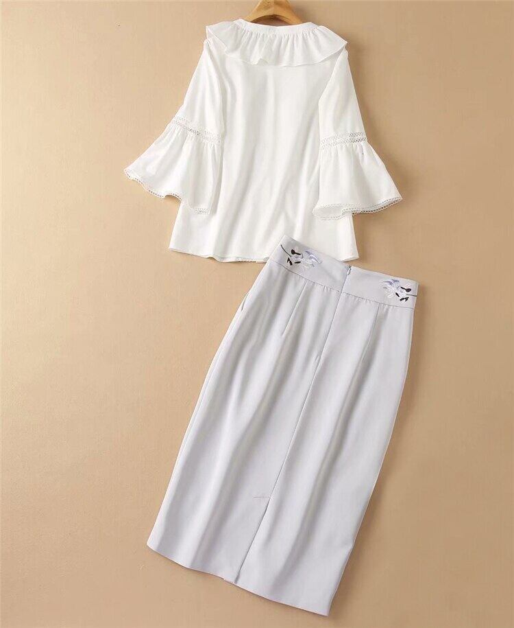 春秋の女性セット白シャツトップス刺繍ゴージャスなスカートオフィスパーティースーツ ホワイト スプリング 春物 オータム 秋物 会社 学校 通勤や通学にも pri42523066752