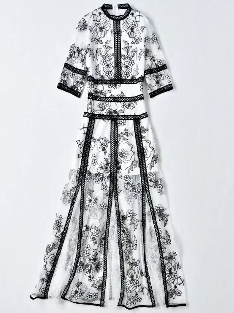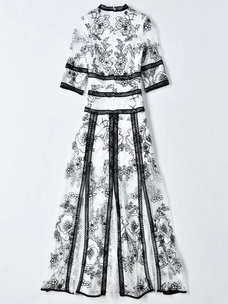 s レディース 夏 長袖 セクシー 刺繍 メッシュ ロングドレス パーティードレス レッド サマー 夏物 pri27581497880