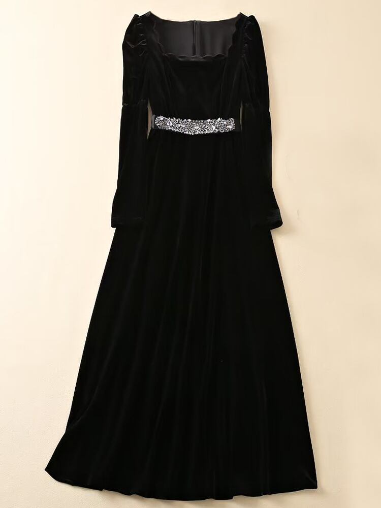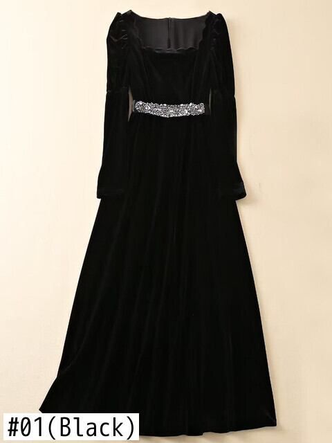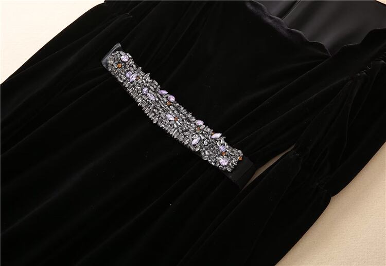 秋の女性の豪華な有名人のパーティー ダイヤモンド ベルト ベルベット ロング ドレス オータム 秋物 ハーネス pri63603155677
