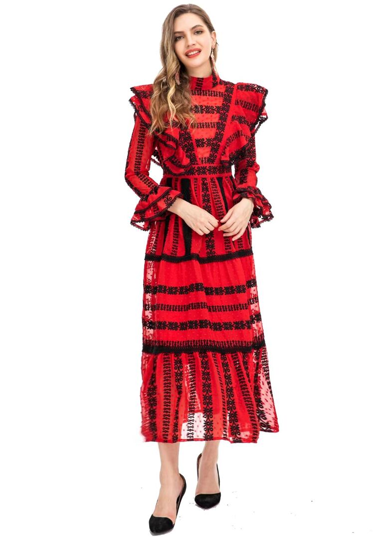 秋の女性のストリートシックなフリル長袖刺繍ロングドレスパーティー オータム 秋物 pri84166394644
