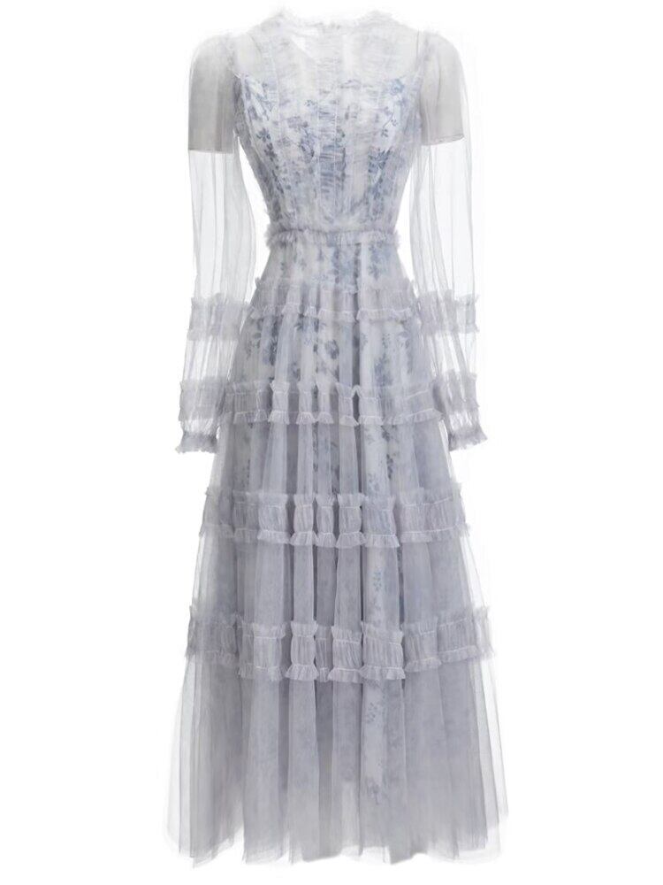 春秋の女性のメッシュ セレブリティ パーティー シックなボヘミアン プリント ミディ ドレス スプリング 春物 オータム 秋物 pri22929523914