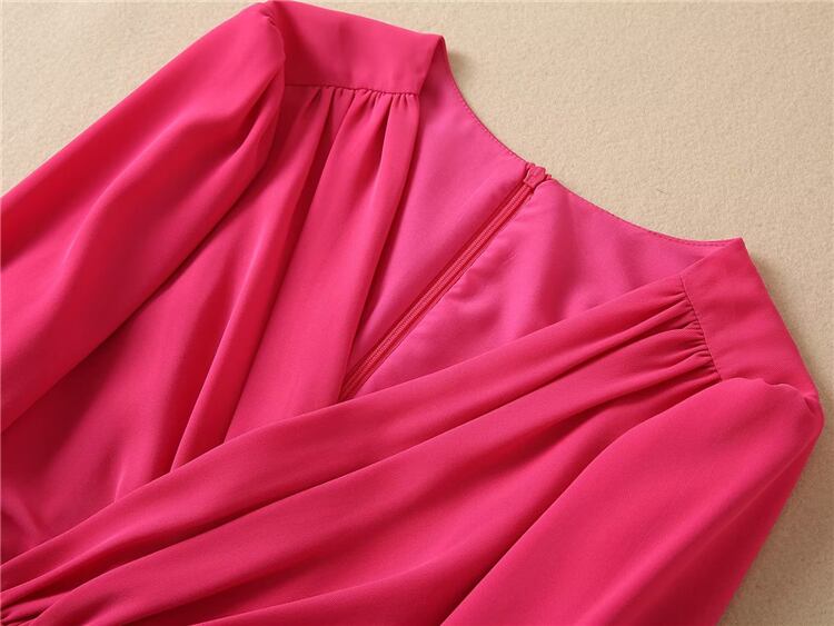 春秋の女性のストリート長袖 V ネック ミディ ドレス有名人パーティー ロング スプリング 春物 オータム 秋物 Vネック pri58556273943