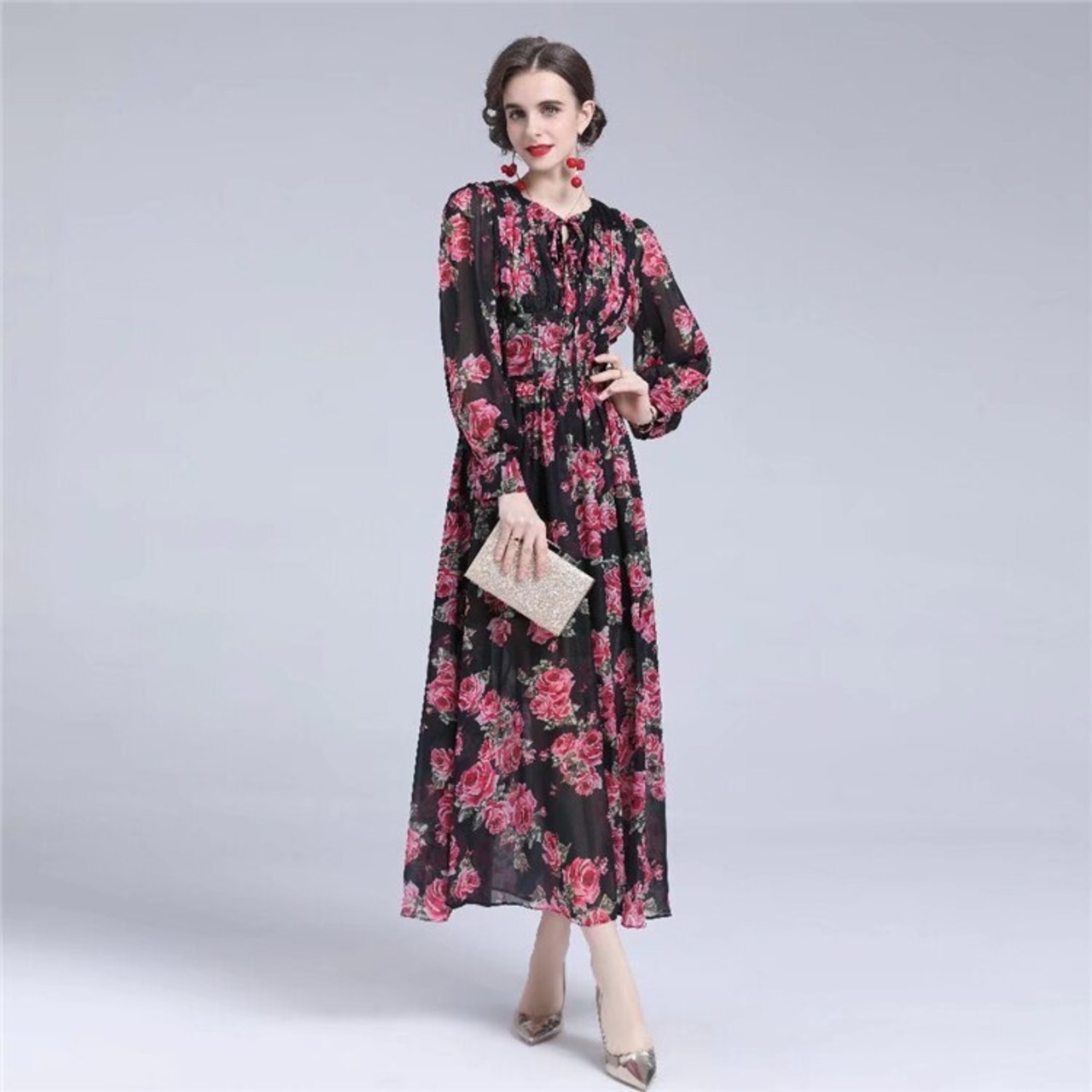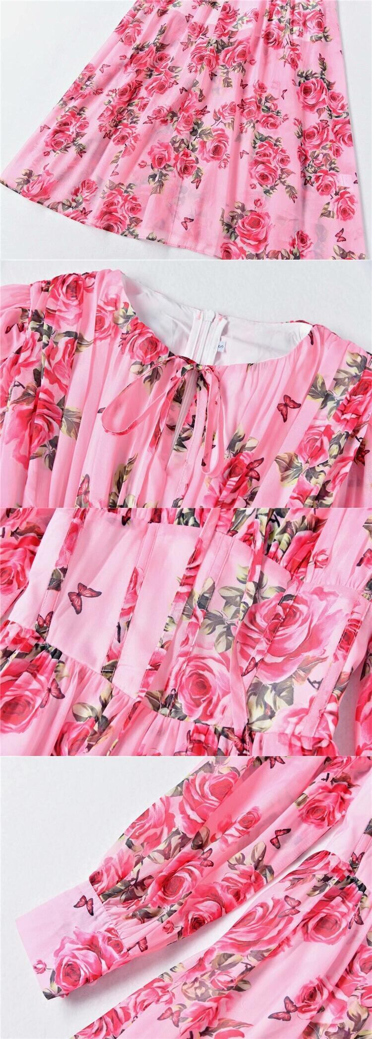 春秋の女性のボヘミアン ゴージャスなパーティー フラワー プリント シフォン ロング ドレス スプリング 春物 オータム 秋物 フラワーデザイン pri99330395704