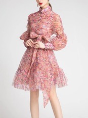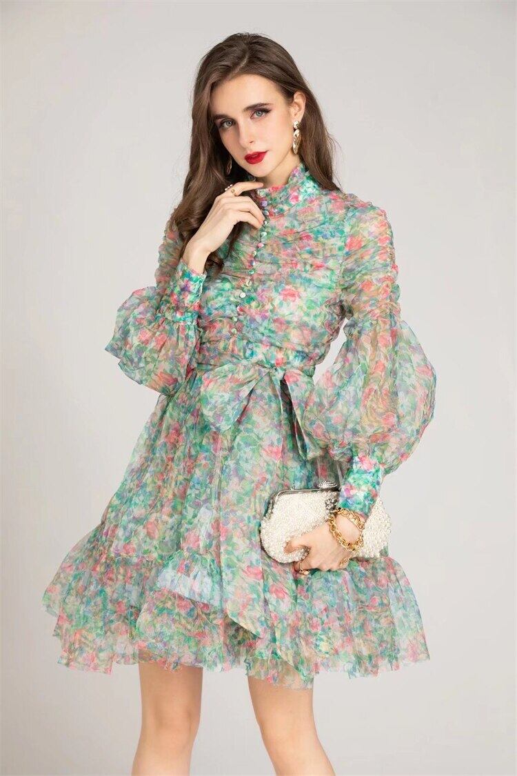 女性の 2022 春ランタン スリーブ メッシュ ミニ ドレス スタイリッシュなセクシーなパーティー ドレス ランタンスリーブ スプリング 春物 pri64807072987