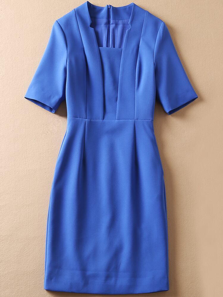 春秋の女性のシックなオフィス パーティー ブルー ペンシル ドレス スプリング 春物 オータム 秋物 会社 学校 通勤や通学にも pri59228284108