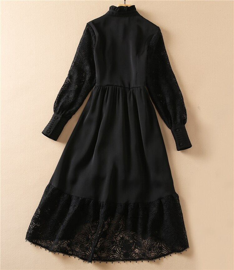 2022春秋の女性のオフィスパーティー長袖レースブラックドレス ロング スプリング 春物 オータム 秋物 会社 学校 通勤や通学にも pri81621727016