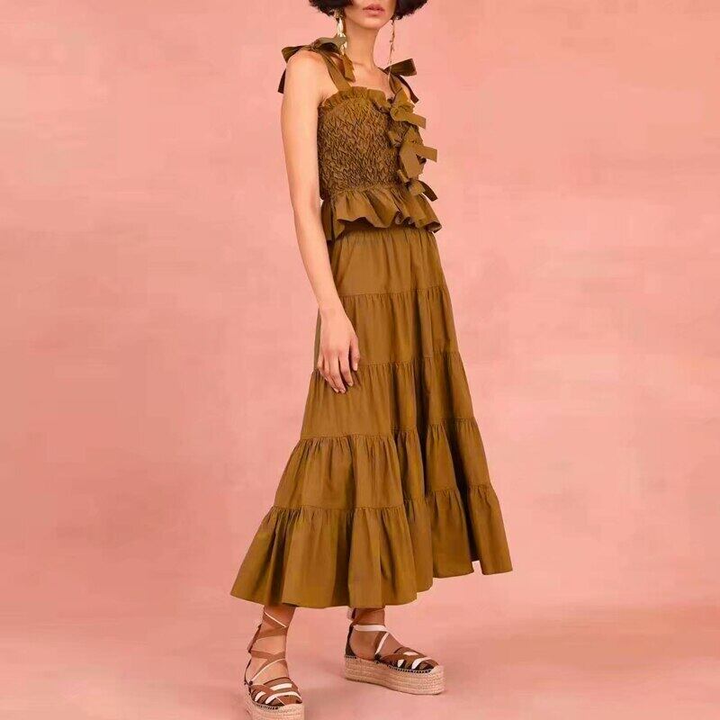 夏の女性のスカートセット弾性スリングトップスロングハーフスカートパーティースーツ エラスティック 伸縮 サマー 夏物 pri4655110261