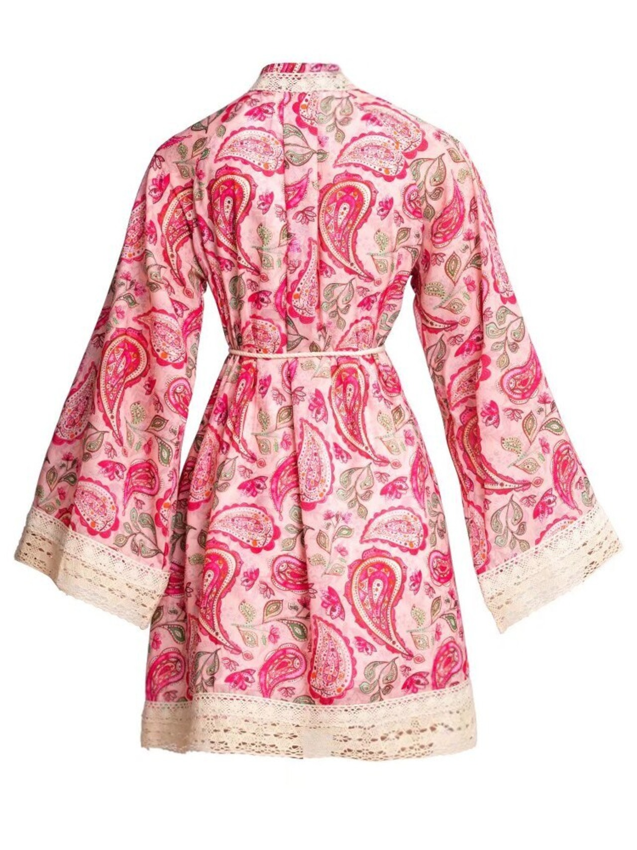 女性の春秋のボヘミアン プリント フレア スリーブ ルーズ パーティー ドレス フレアスリーブ スプリング 春物 オータム 秋物 pri73992231967