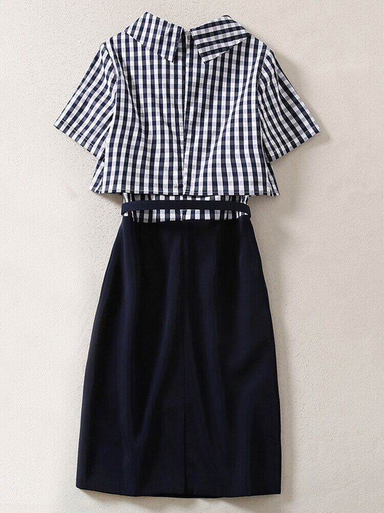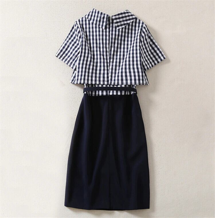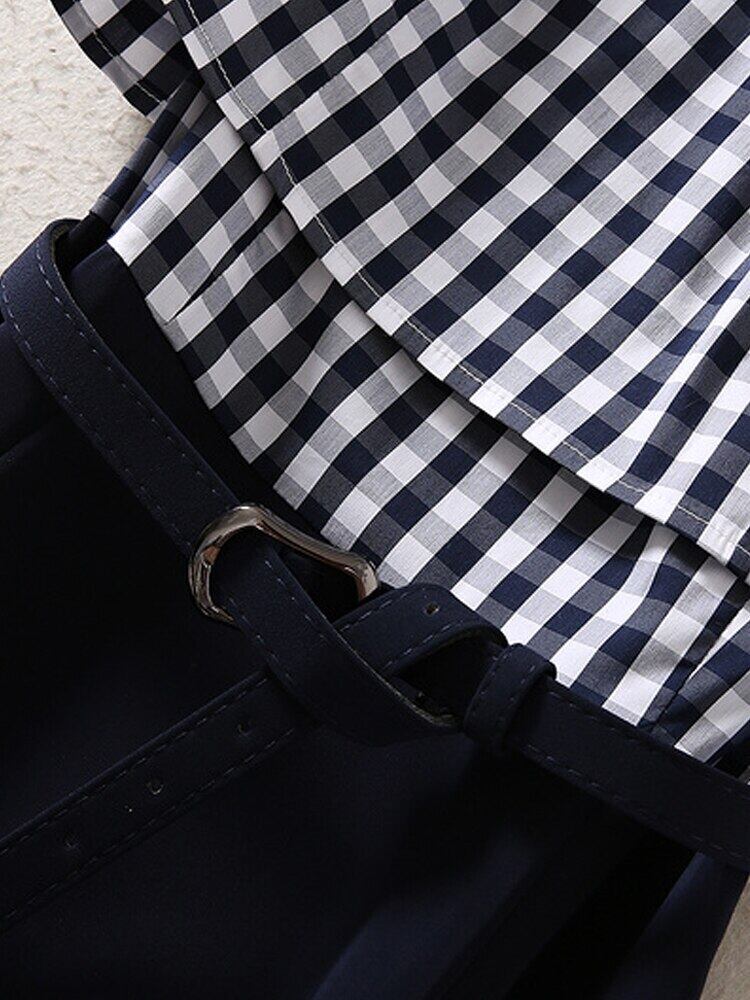 ストリートの女性の夏の有名人の格子縞のパッチワーク ブラック ミニ ドレス サマー 夏物 pri56343811782