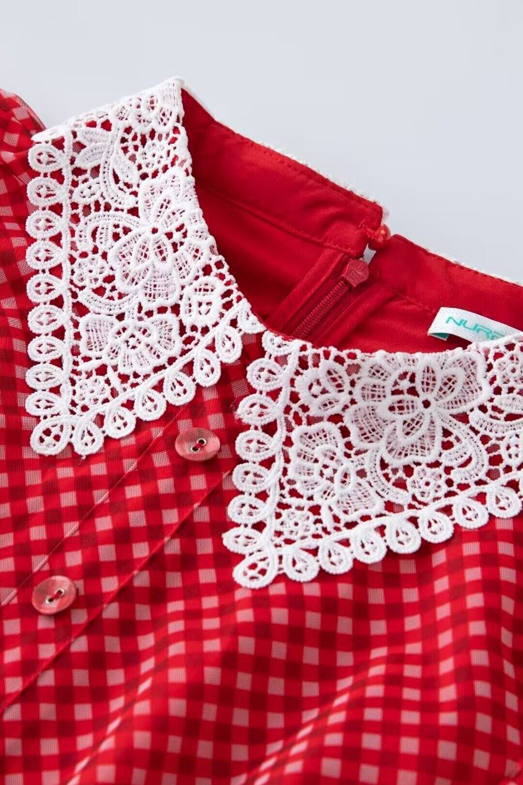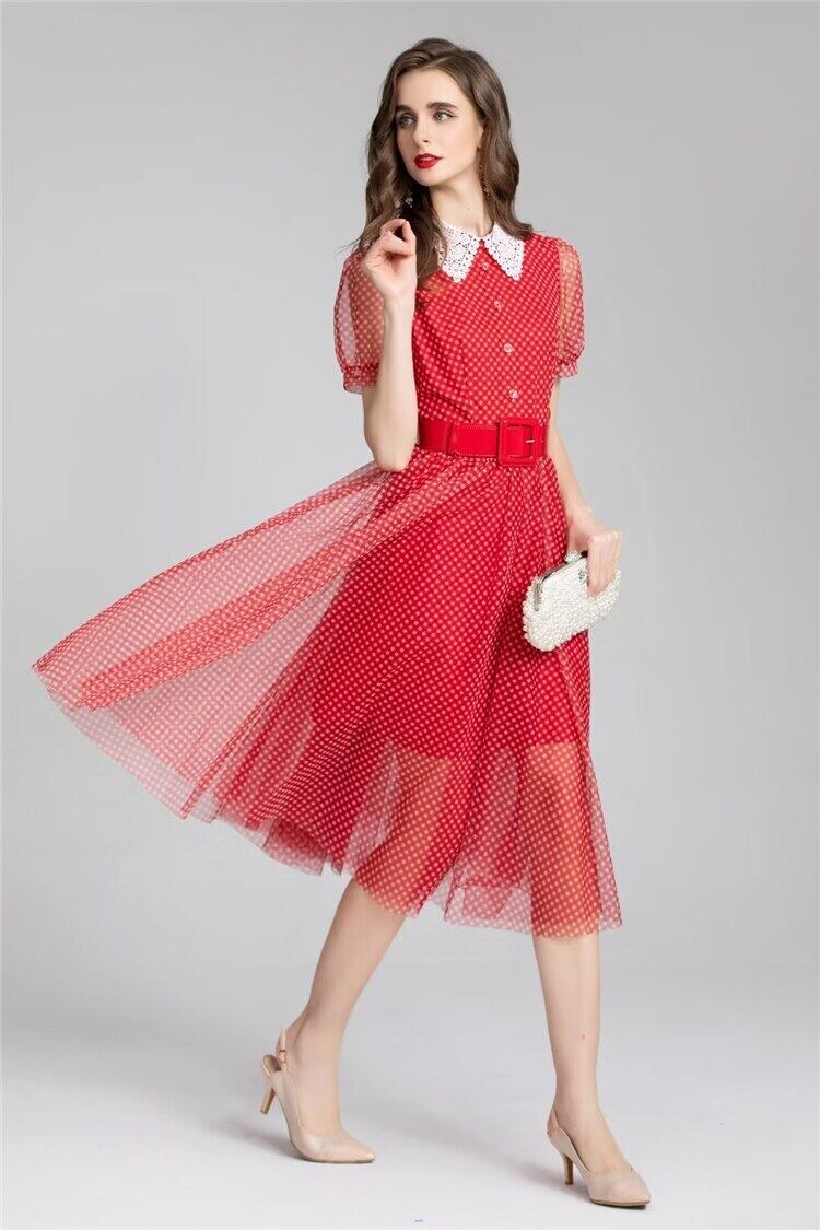 夏の女性のストリート セレブリティ パーティー ラペル赤い格子縞のドレス レッド サマー 夏物 pri85142860020