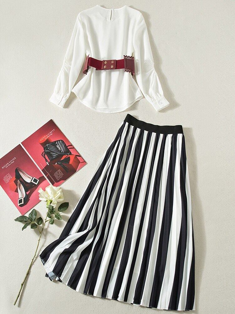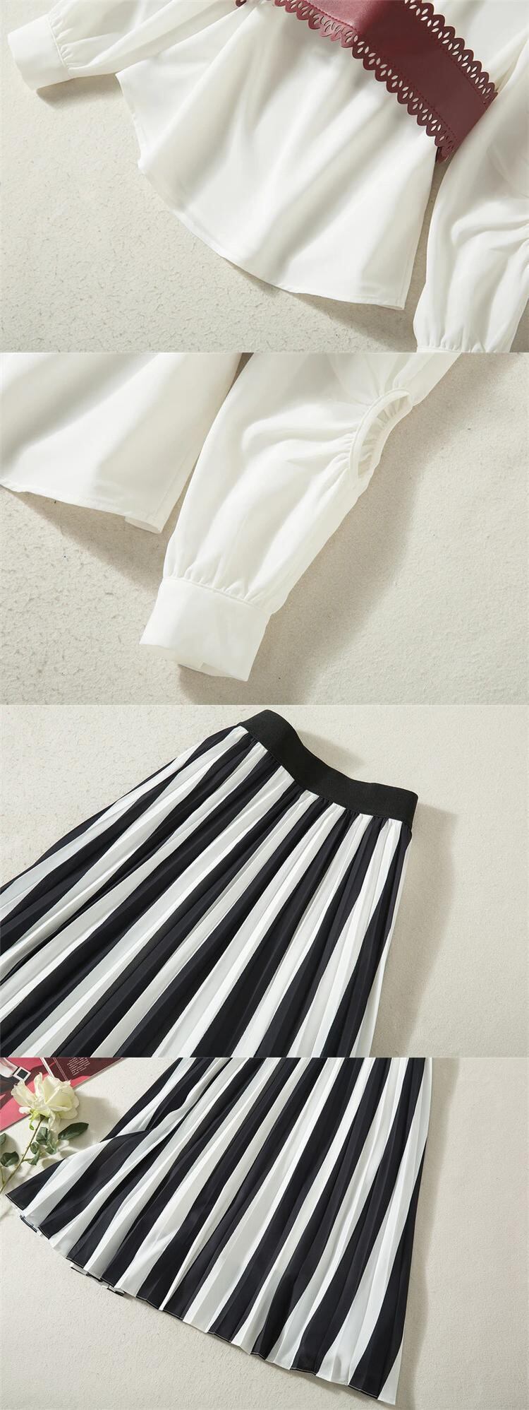 春の女性のセット白シャツ ストライプ スカート オフィス パーティー スーツ ホワイト スプリング 春物 会社 学校 通勤や通学にも pri94056150406