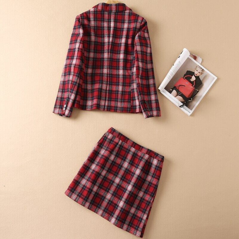 滑走路春秋の女性のスカートセット格子縞のスーツトップスミニセクシーなスカートパーティースーツ スプリング 春物 オータム 秋物 pri89180386597
