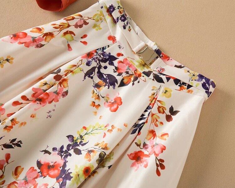 2022 春秋の女性のセットシャツトップスベルトプリントスカートパーティーオフィススーツ スプリング 春物 オータム 秋物 ハーネス 会社 学校 通勤や通学にも pri29334780036