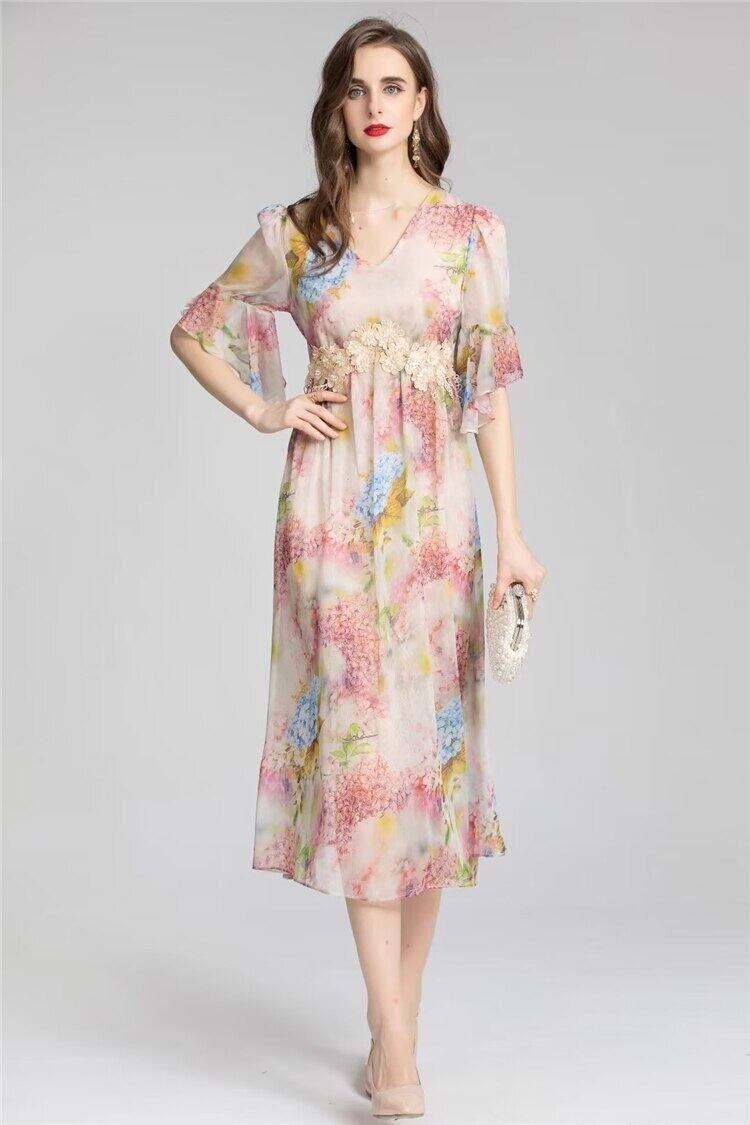 s レディース サマー ボヘミアン ストリート パーティー フローラル アップリケ プリント シフォン ドレス 夏物 花柄 pri51227349560