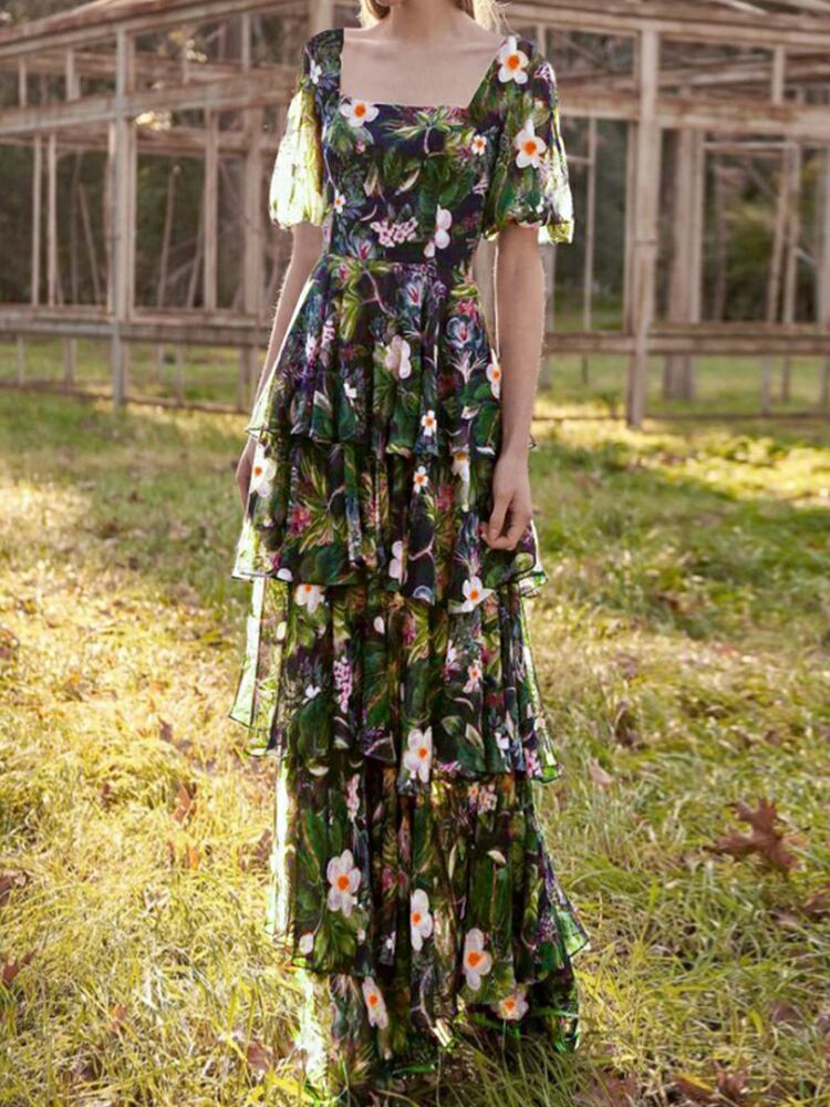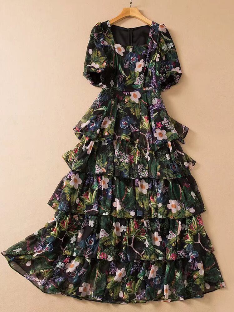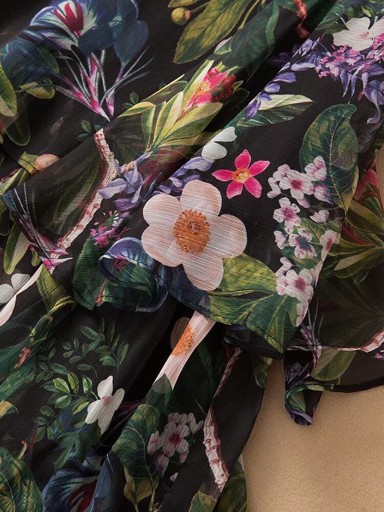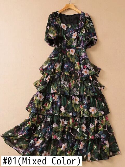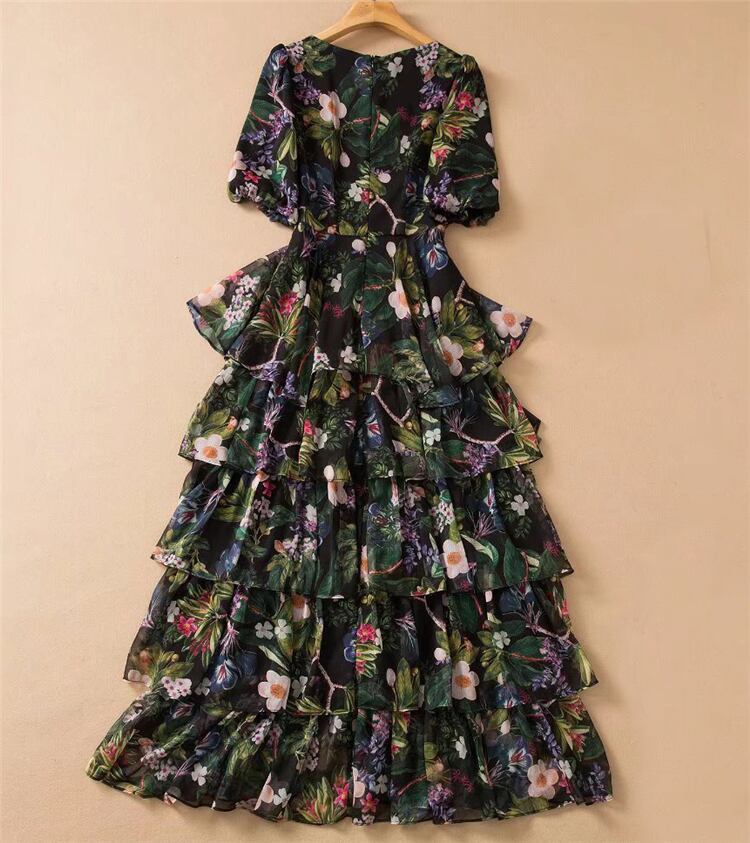 滑走路の女性の夏休みストリート パーティー半袖フリル プリント ドレス ショート ハーフスリーブ サマー 夏物 pri19163845754