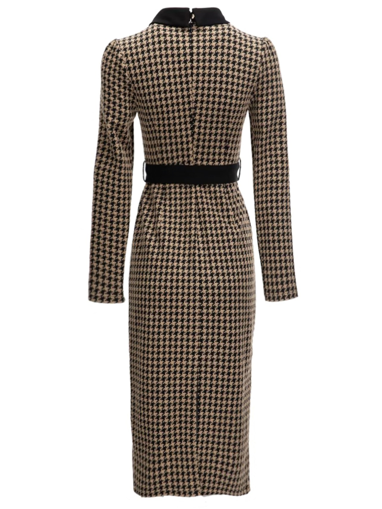 春秋の女性の有名人パーティー ベルト ボタン ミディ ペンシル ドレス スプリング 春物 オータム 秋物 ハーネス pri36992902093