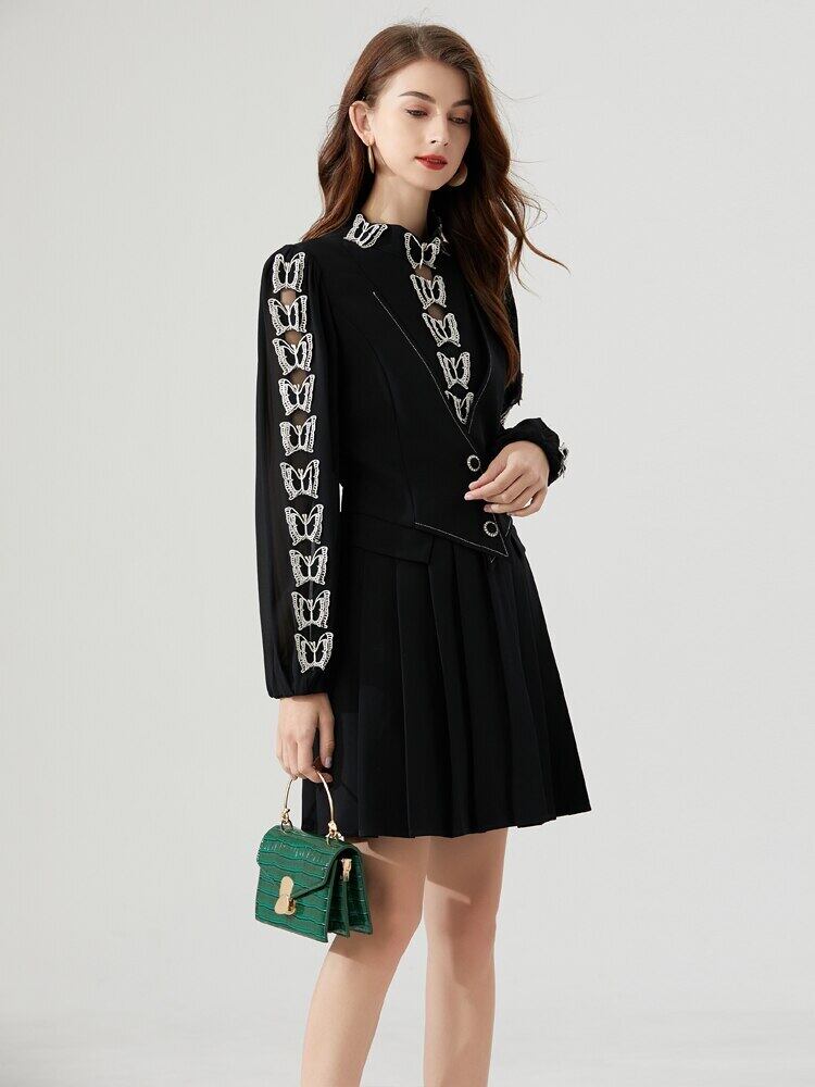 レディース サマーバケーション ボタンボウ ストリート セレブリティ パーティー ブラック ミニドレス リボン 夏物 pri31710912212