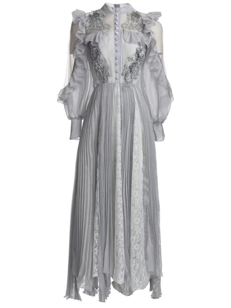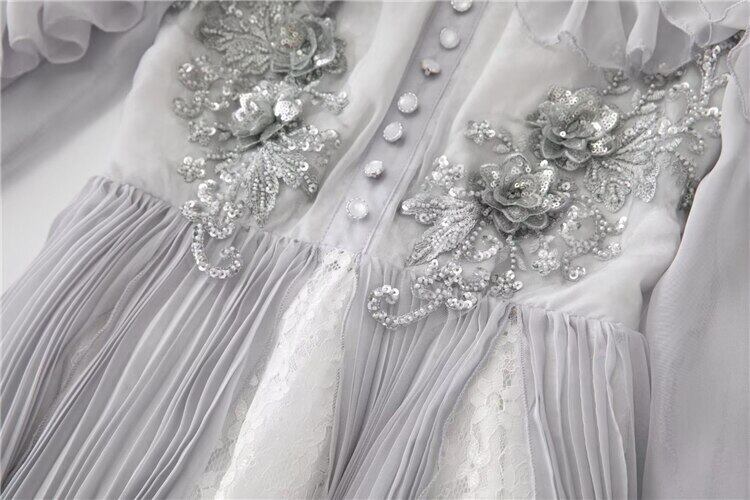 滑走路の女性の夏の有名人のパーティーゴージャスなダイヤモンドの花刺繍ミディドレス サマー 夏物 フラワーデザイン pri17596818082