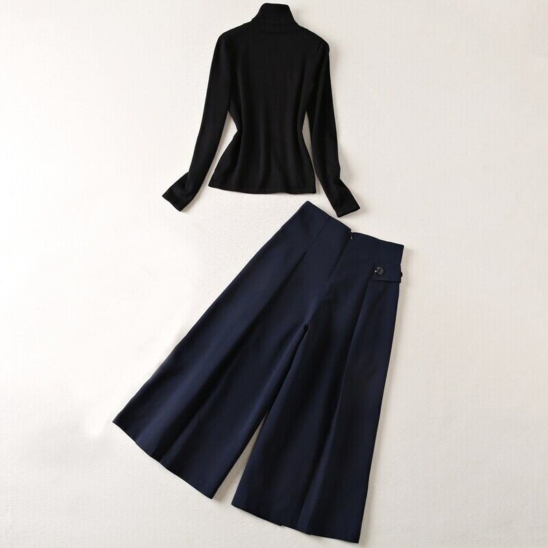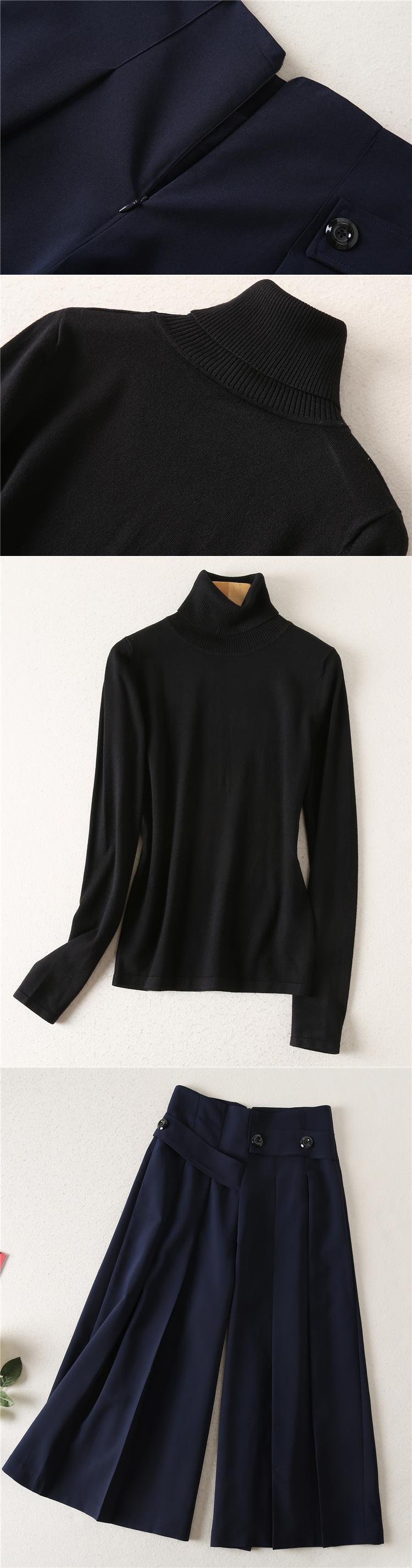 ビクトリア朝の春秋の女性セット黒ニット襟トップス パンツ オフィス パーティー スーツ ブラック スプリング 春物 オータム 秋物 会社 学校 通勤や通学にも pri70068512234