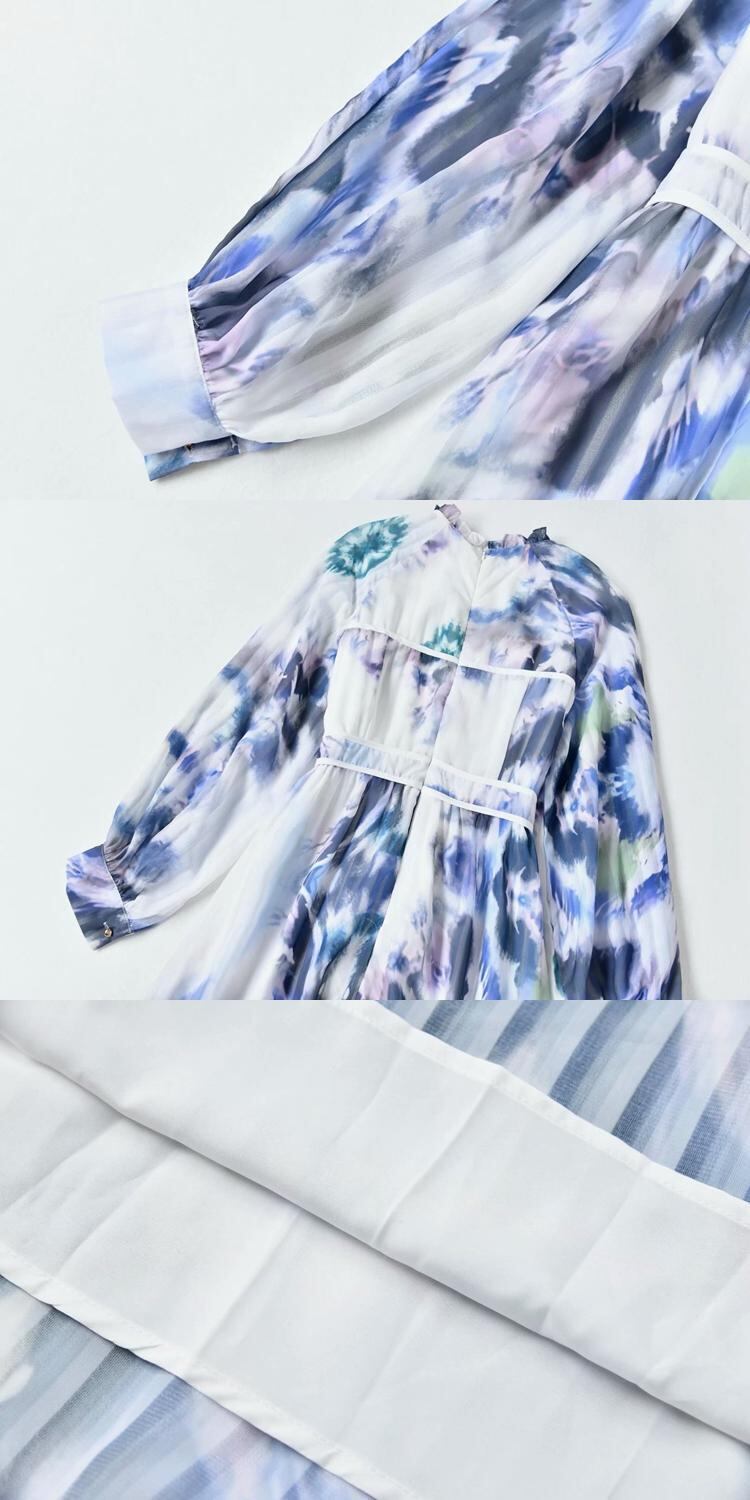 春秋の女性のミディ ドレス パーティー オフィス長袖プリント シフォン ドレス ロング スプリング 春物 オータム 秋物 会社 学校 通勤や通学にも pri98462894610