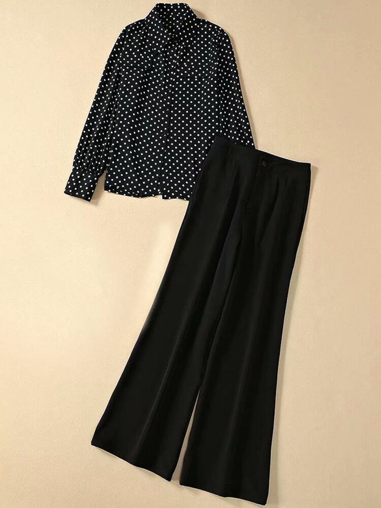 ケイト レディース セット ランウェイ 春 秋 ドット シャツ トップ パンツ パーティー 2ピース スーツ スプリング 春物 オータム 秋物 pri23811142358