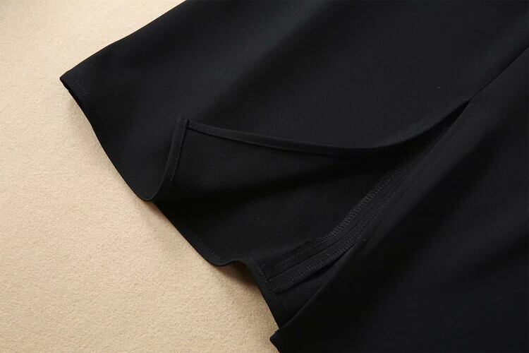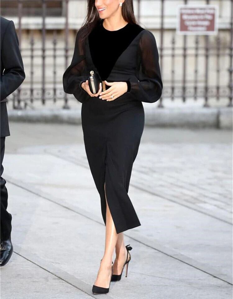 女性春秋パーティー オフィス長袖ベルベット パッチワーク ブラック ミディ ドレス ロング スプリング 春物 オータム 秋物 会社 学校 通勤や通学にも pri88455891237
