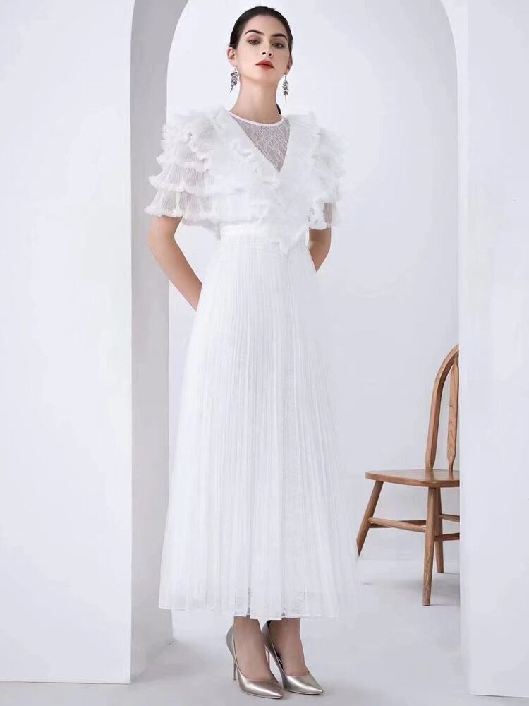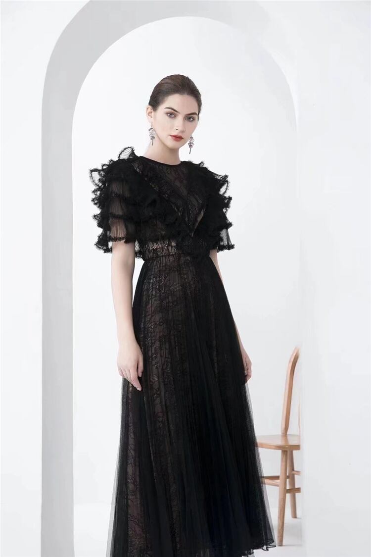 女性の夏のセレブリティ パーティー ゴージャスなフリル プリーツ メッシュ ドレス サマー 夏物 pri66259138731