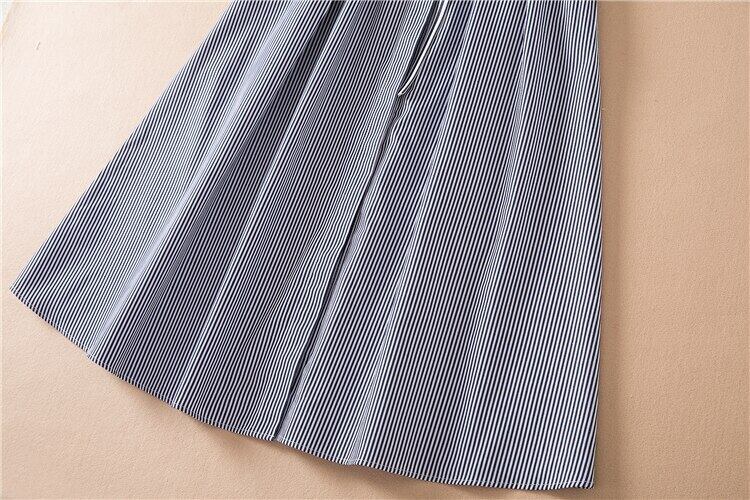 2022 夏の女性のオフィス パーティー プリント半袖ベルト ストライプ ミディ ドレス ショート ハーフスリーブ サマー 夏物 ハーネス 会社 学校 通勤や通学にも pri13537899218
