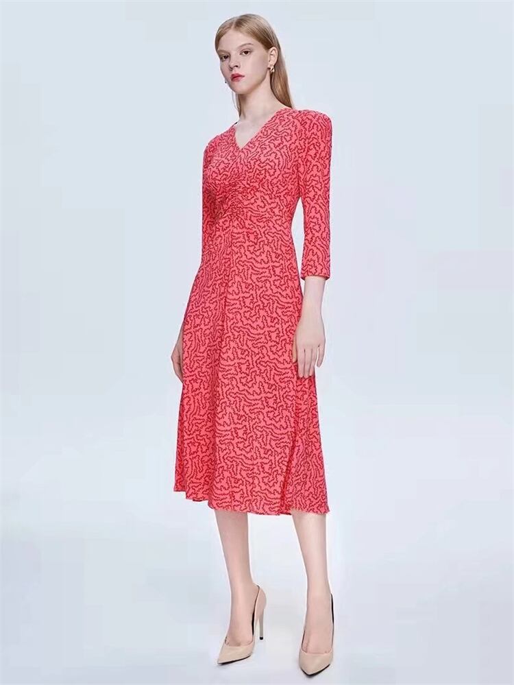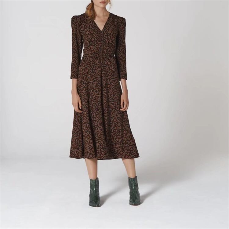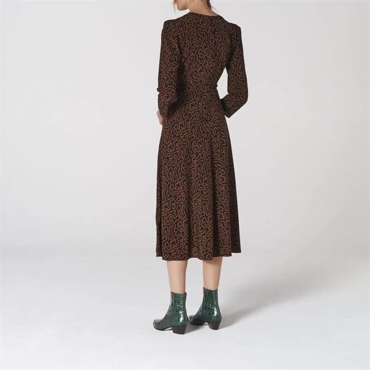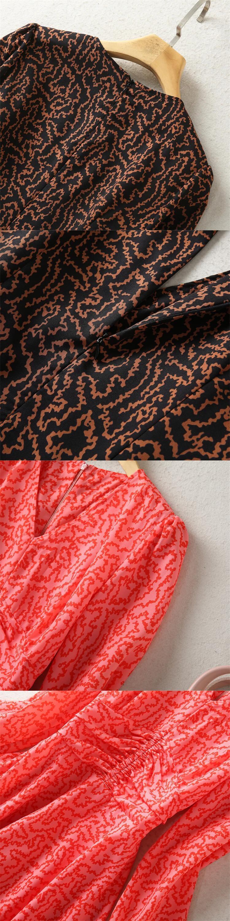 ケイト春秋の女性プリント V ネック オフィス パーティー ミディ ドレス スプリング 春物 オータム 秋物 Vネック 会社 学校 通勤や通学にも pri25775013055