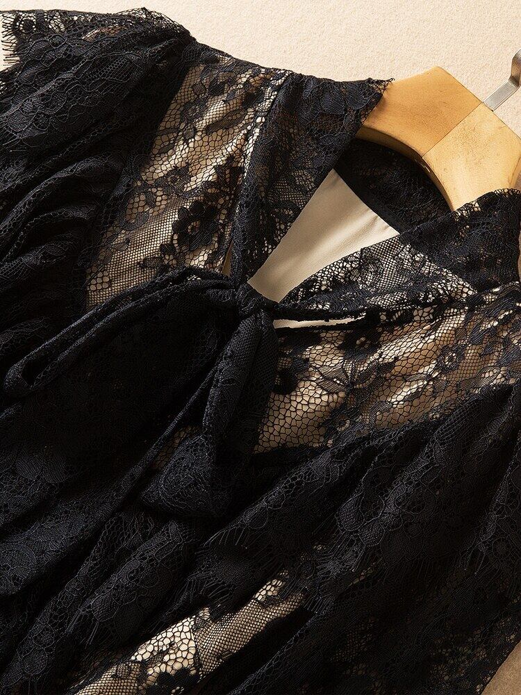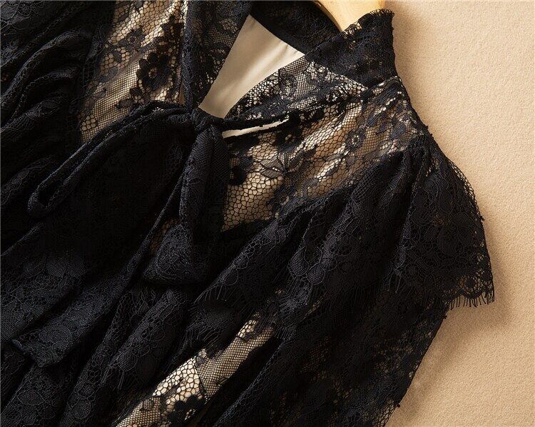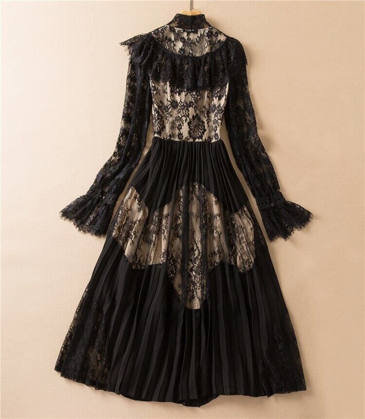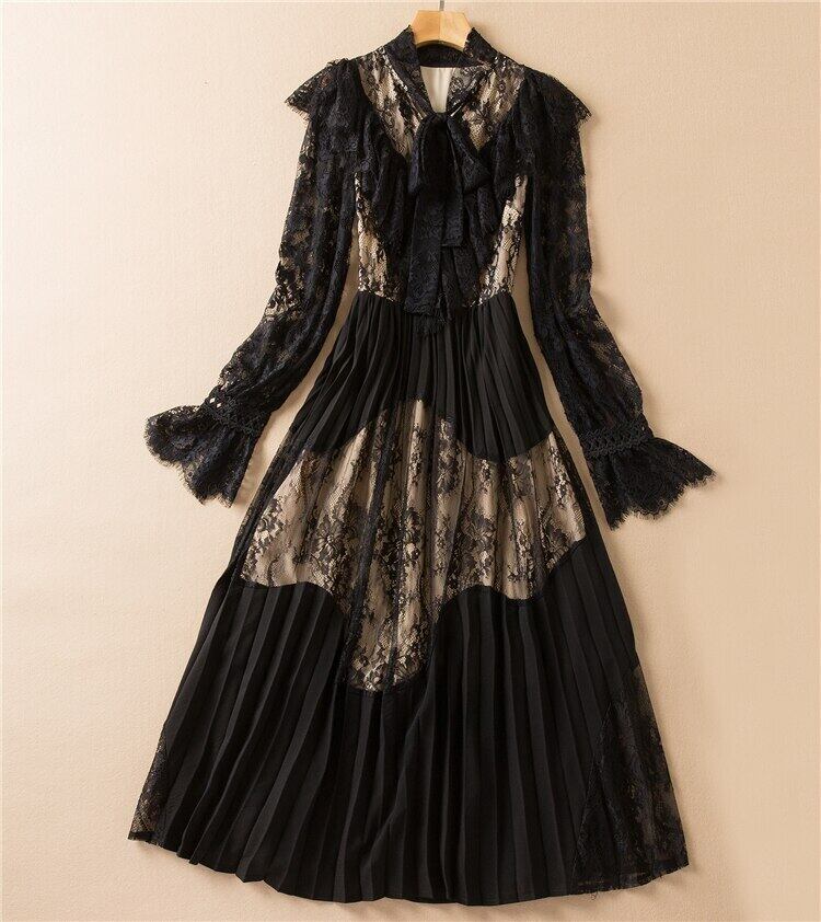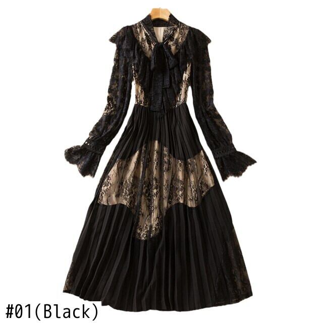 春秋の女性のミディ ドレス パーティー長袖ブラック レース ドレス ロング スプリング 春物 オータム 秋物 pri77760142083