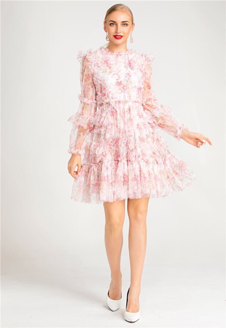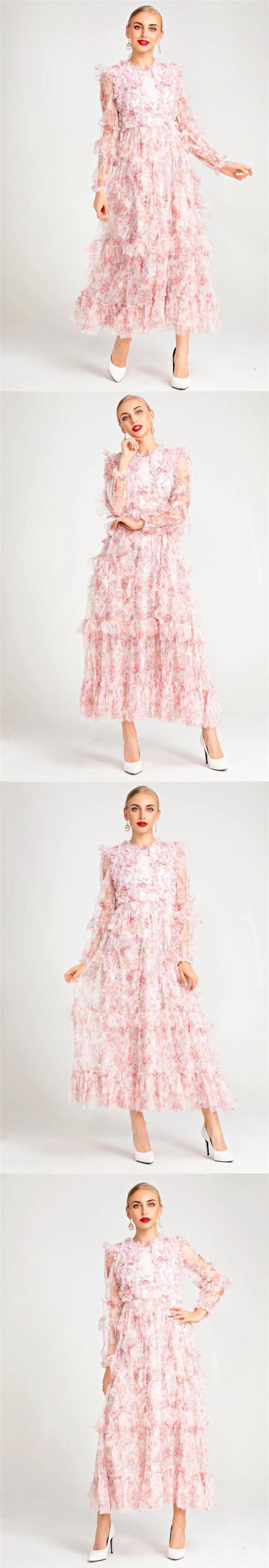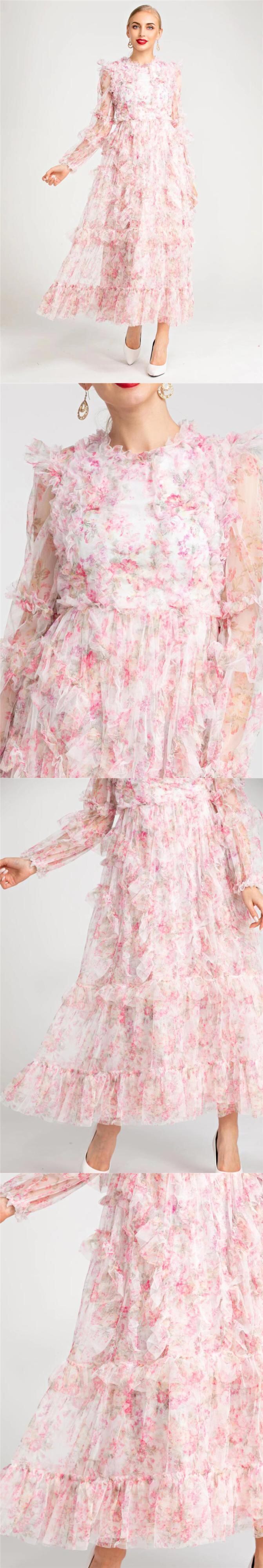 2022 春夏レディース ボヘミアン パーティー メッシュ長袖プリント ドレス ロング スプリング 春物 サマー 夏物 pri62462669849