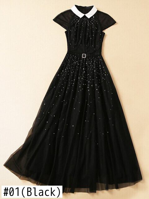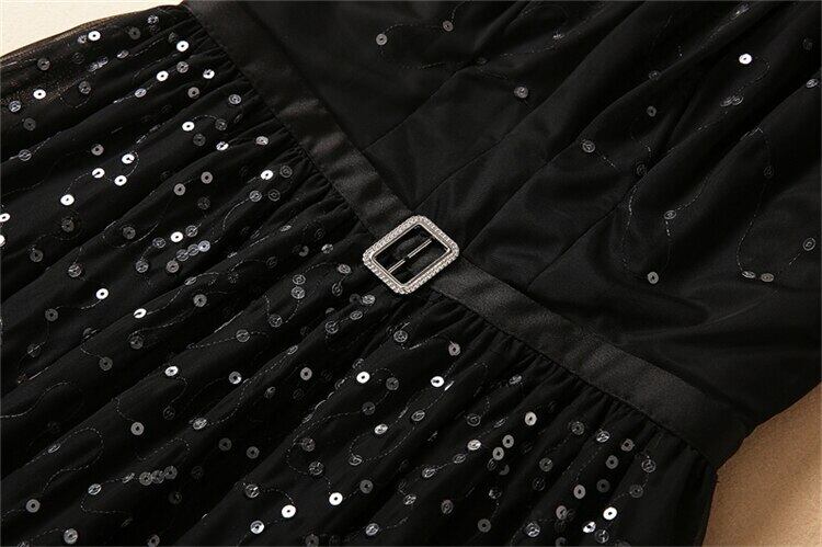 夏の女性のスパンコール刺繍ブラック メッシュ ストリート セレブリティ パーティー ドレス サマー 夏物 pri64131094873