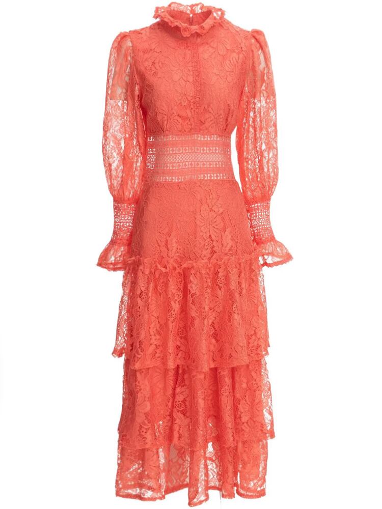 女性の春秋のボヘミアン中空アウト パーティー ホリデー長袖レース ミディ ドレス ロング スプリング 春物 オータム 秋物 pri18658500226