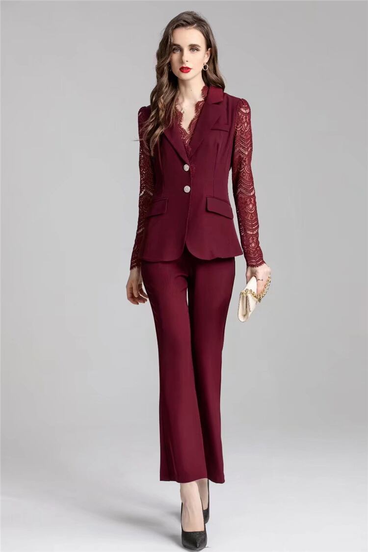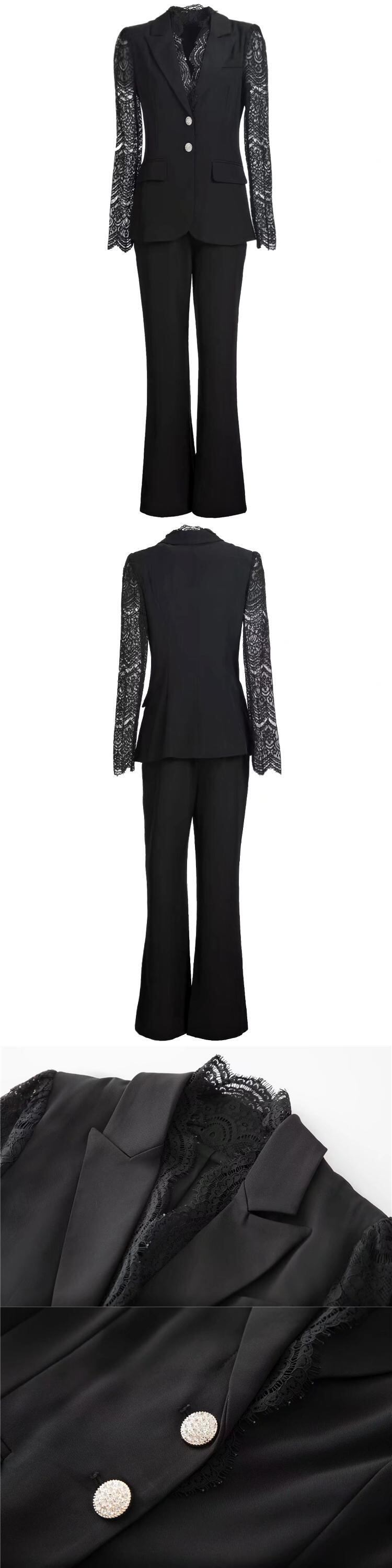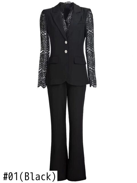 春秋の女性のセットレース長袖スーツトップスパンツオフィススーツ ロング スプリング 春物 オータム 秋物 会社 学校 通勤や通学にも pri34732177266