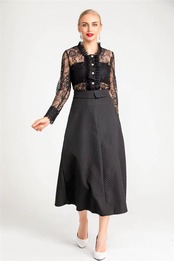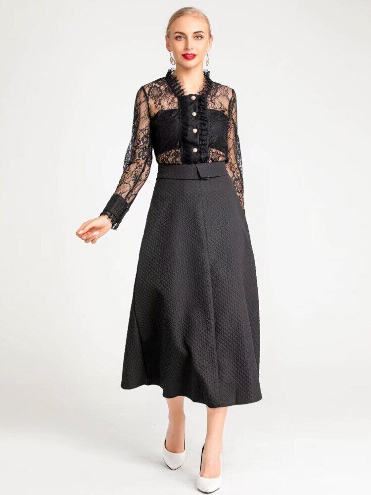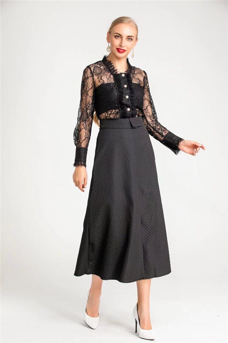 2022 春秋の女性のセットセクシーなレーストップス黒スカートパーティースーツ ブラック スプリング 春物 オータム 秋物 pri63408102576