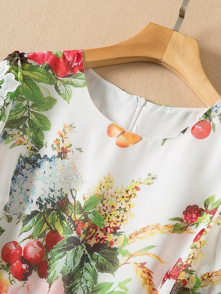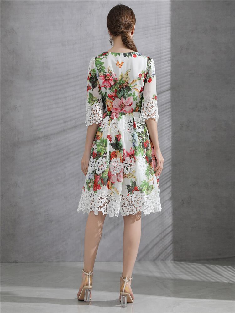 女性の夏の豪華なレースのパッチワーク プリント シフォン ドレス オフィス パーティー ドレス サマー 夏物 会社 学校 通勤や通学にも pri93250492711