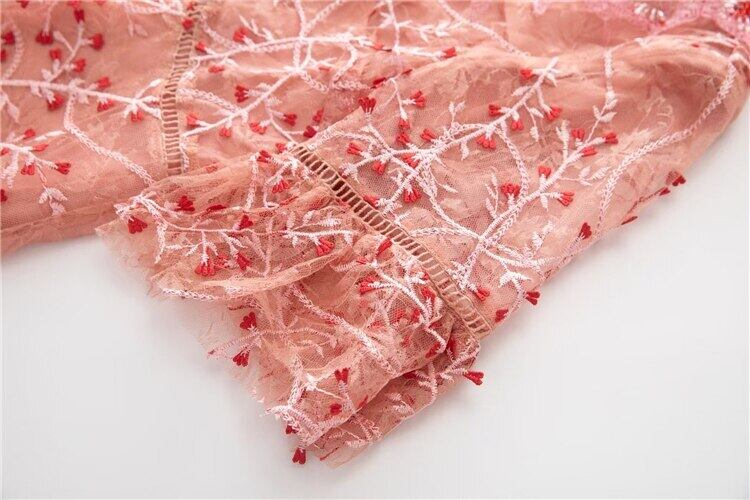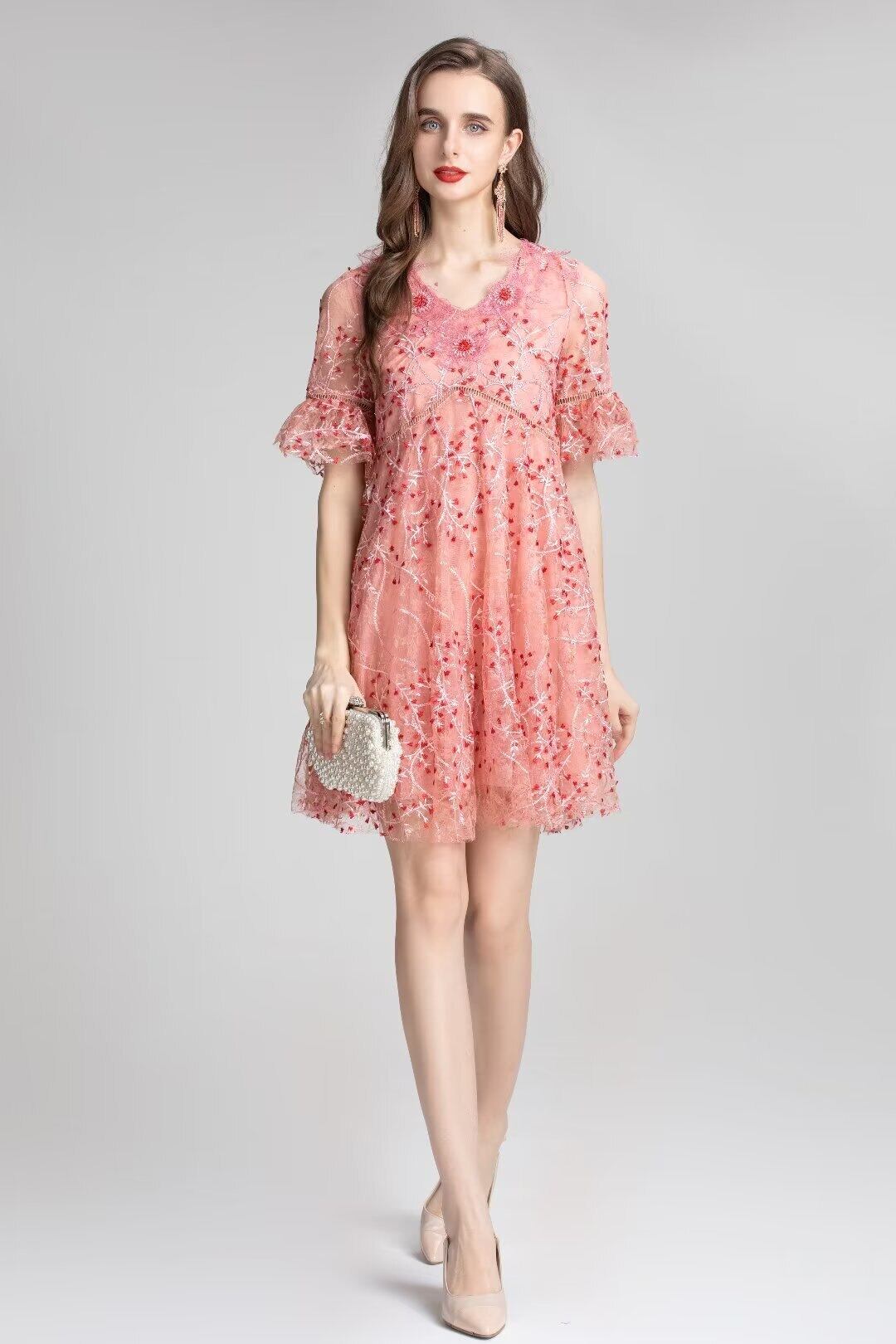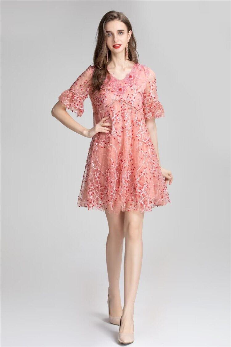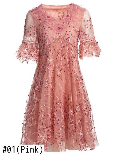 夏の女性の有名人パーティー半袖刺繍メッシュ ミニドレス ショート ハーフスリーブ サマー 夏物 pri34485552577