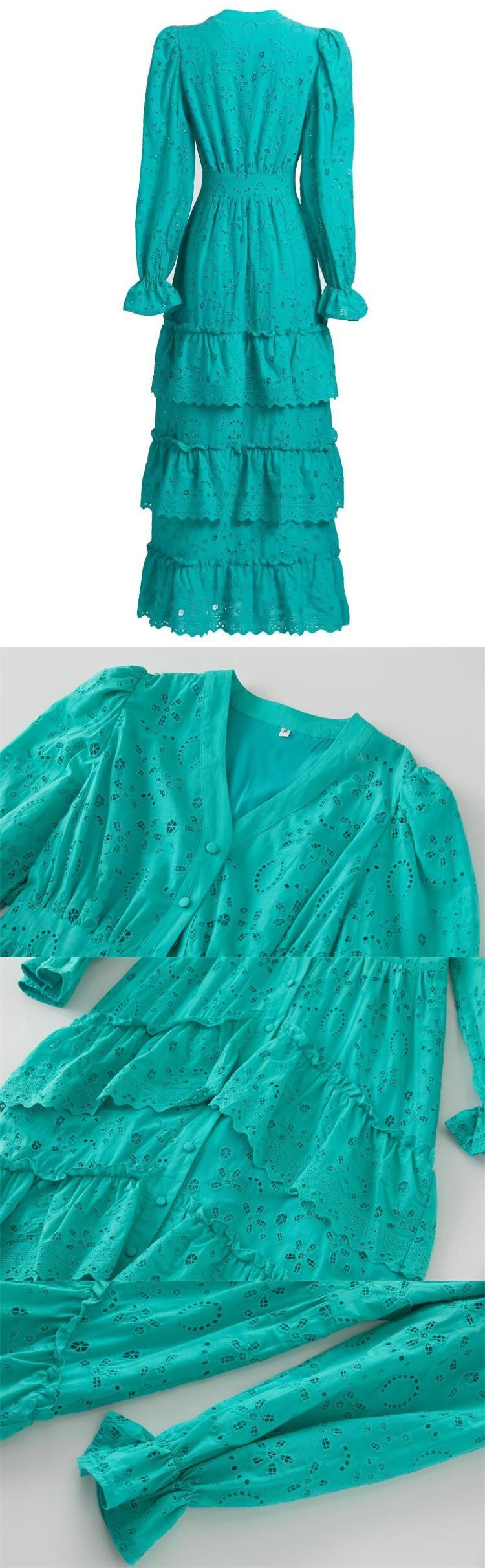 春秋の女性のストリート パーティー ゴージャスな中空アウト刺繍ロング ドレス レッド スプリング 春物 オータム 秋物 pri46262459309