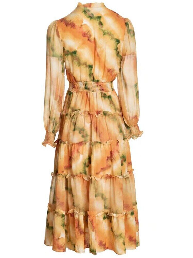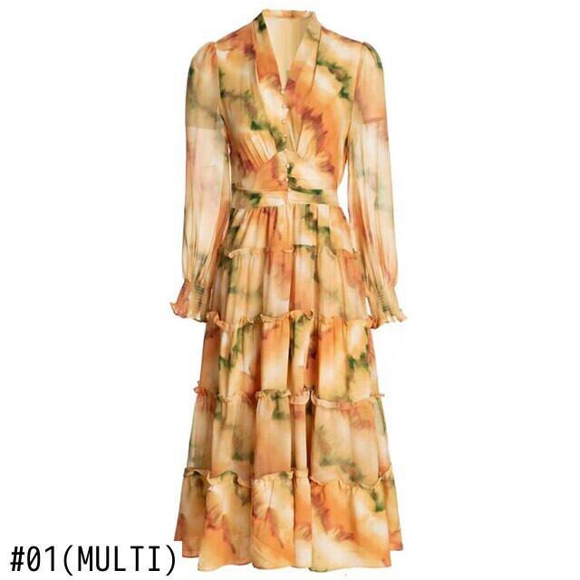 女性の 2022 春長袖 V ネック プリント ミディ ドレス セクシーなパーティー ドレス ロング スプリング 春物 Vネック pri26200411448