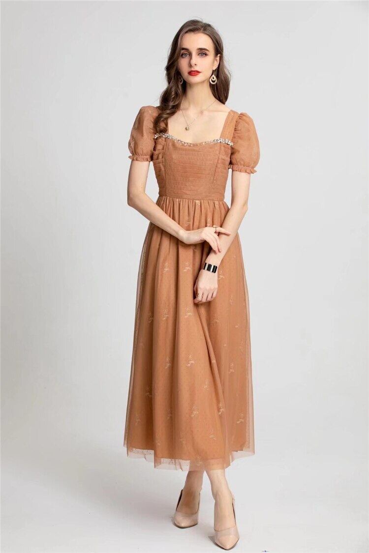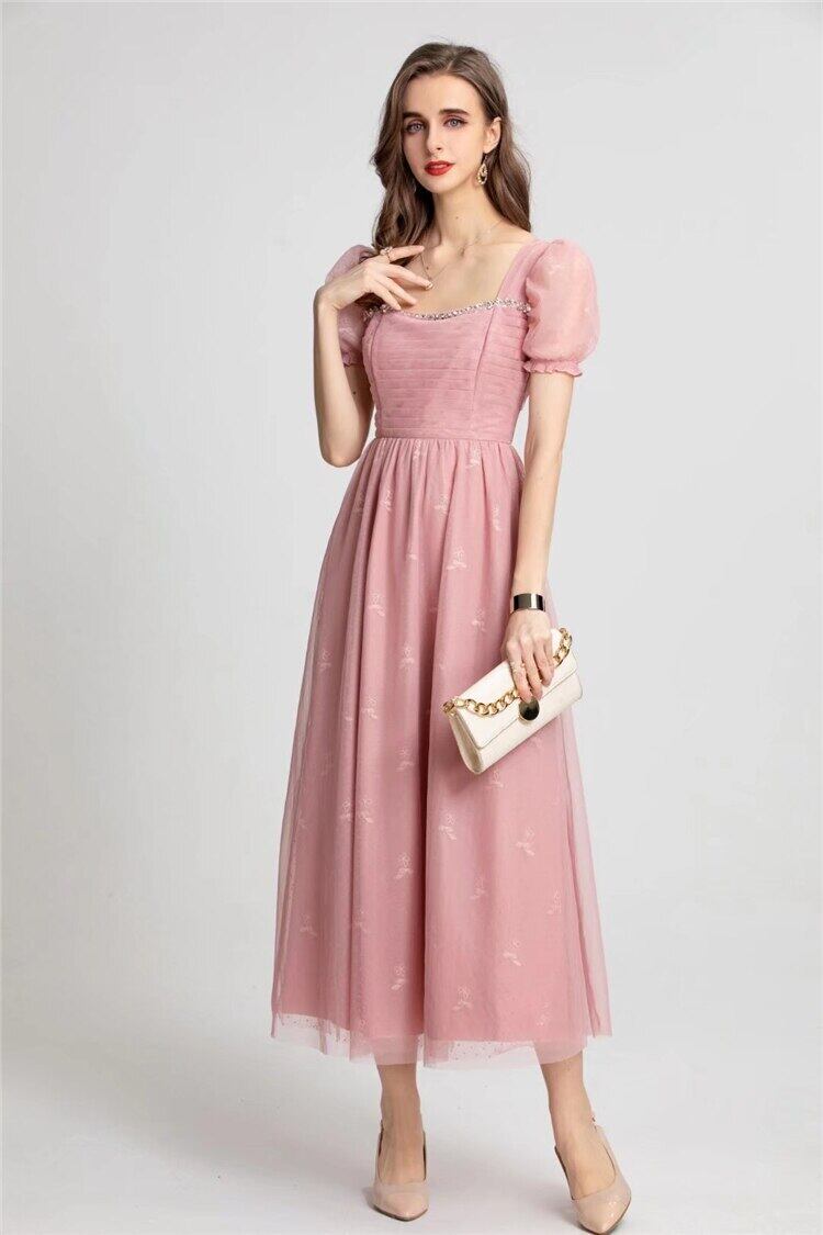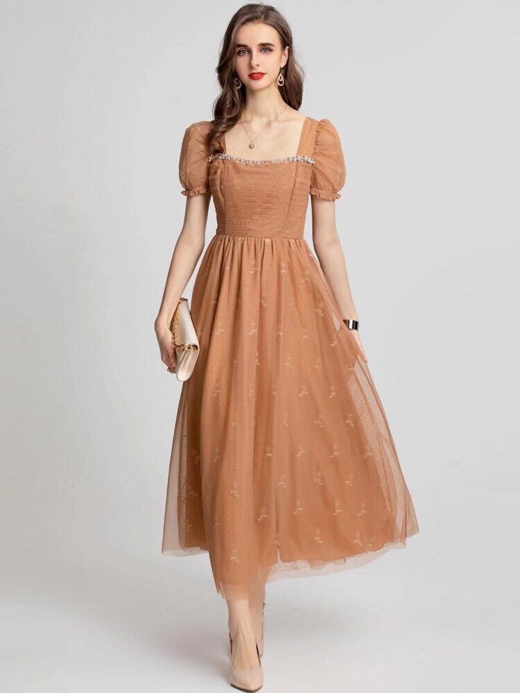 女性の夏のセクシーな有名人パーティー ゴージャスなダイヤモンド刺繍メッシュ ミディ ドレス サマー 夏物 pri25492286561