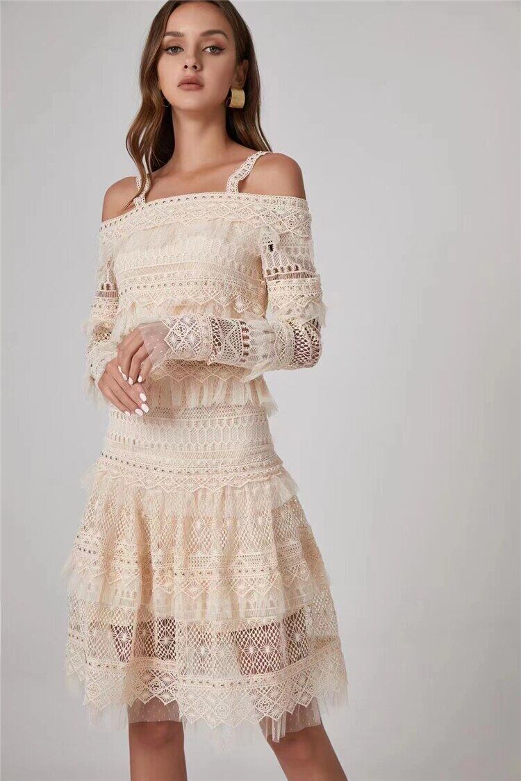 夏の女性のセットセクシーなオフショルダートップスミニスカート有名人のイブニングパーティーレーススーツ サマー 夏物 pri81368735757
