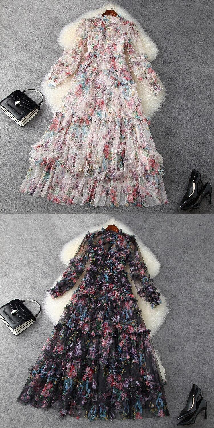 滑走路春秋の女性のプリント長袖ボタン パーティー ミディ ドレス ロング スプリング 春物 オータム 秋物 pri44075989984