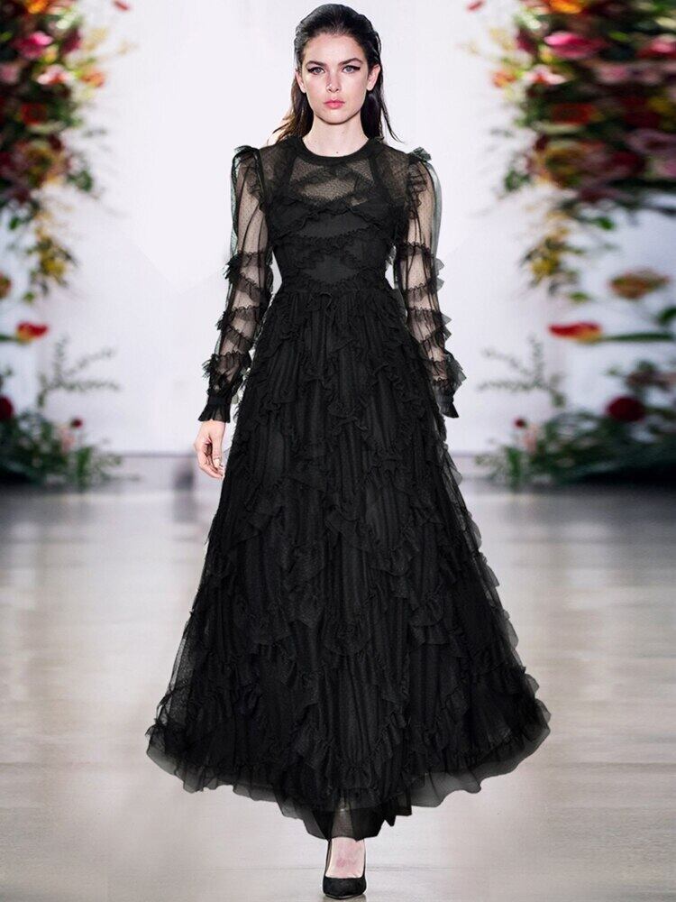 春秋の女性のボヘミアン ブラック ゴージャスなパーティー マキシ ロング ドレス スプリング 春物 オータム 秋物 pri35087736142